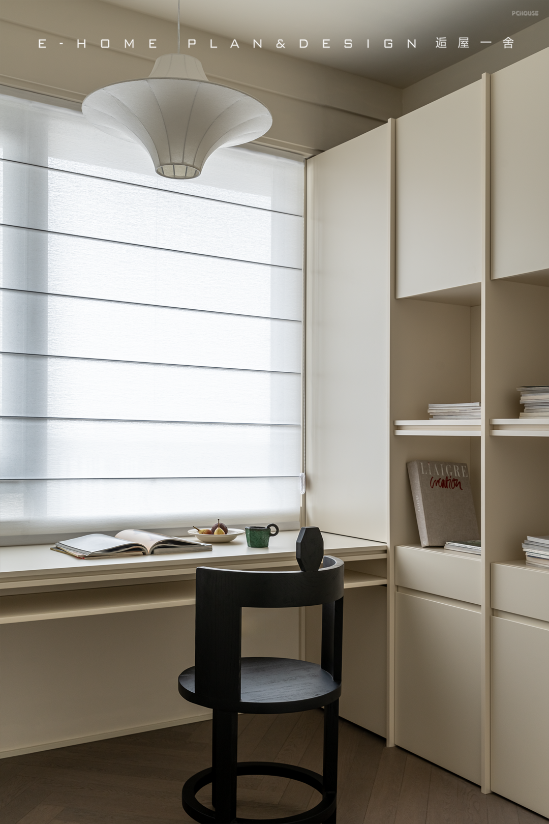 避免繁复的吊顶,仅在天花四角做了弧形处理,当阳光斜射进来,那些柔和的曲线在墙面上投下浅浅的光晕;