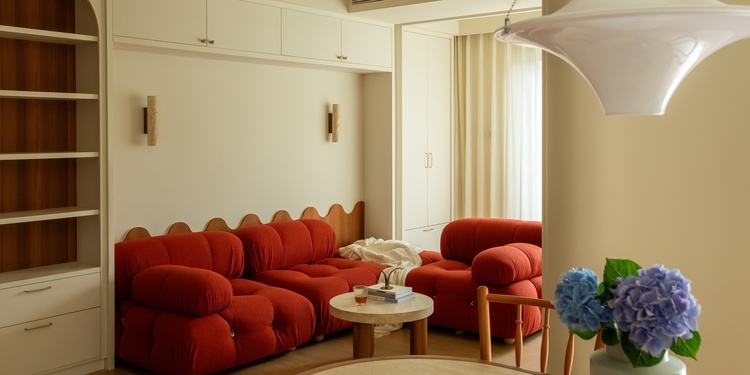 家居采用简洁的造型 。无论是中古风还是包豪斯风格,在硬装上注重简约,避免繁复的吊顶与墙面装饰。整体空间以简约的直线、几何形状或者弧形为主,简约的空间为软装搭配留出更多可能!