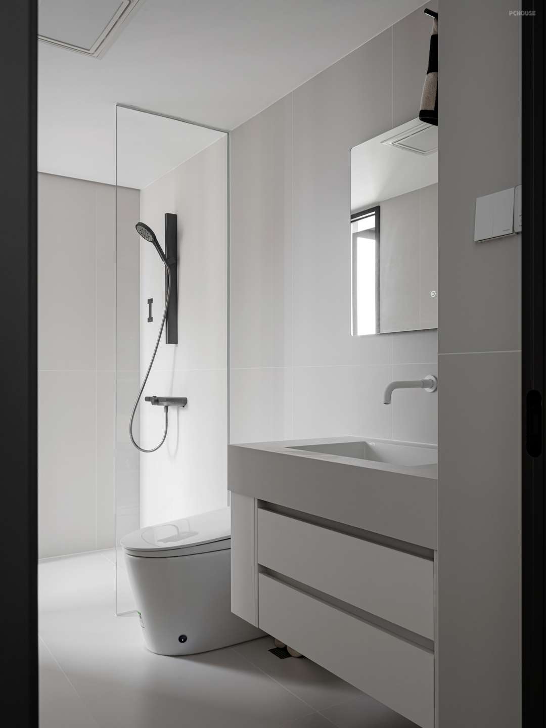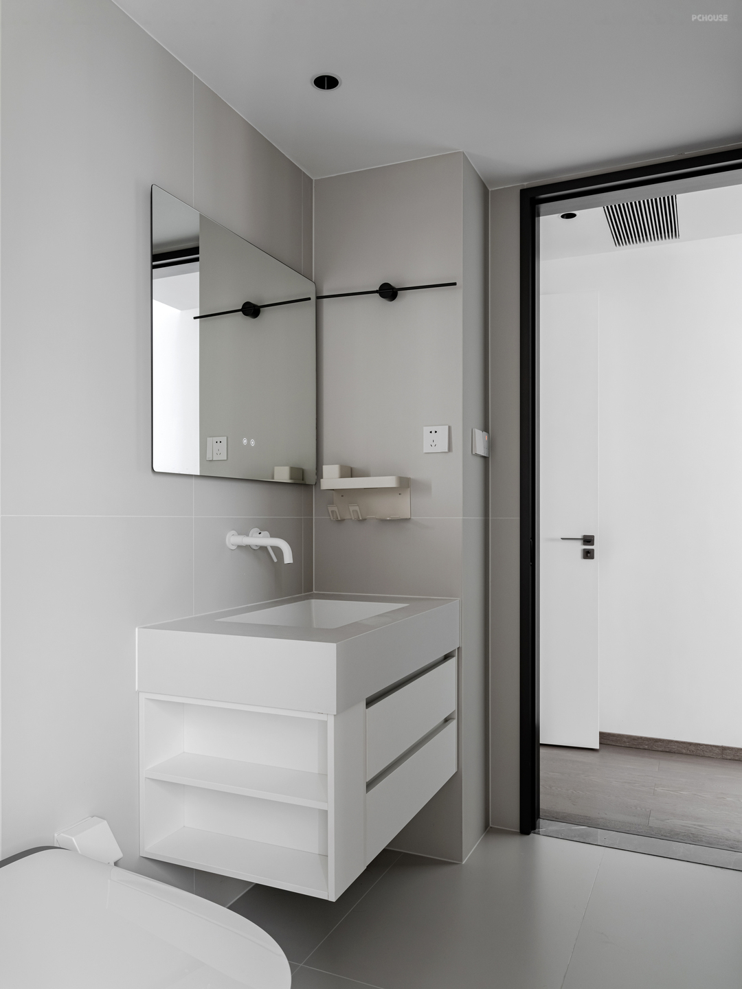卫生间 墙面与地面采用了统一色调的瓷砖铺设,保证了视觉上的和谐统一。也让整个空间更干净。