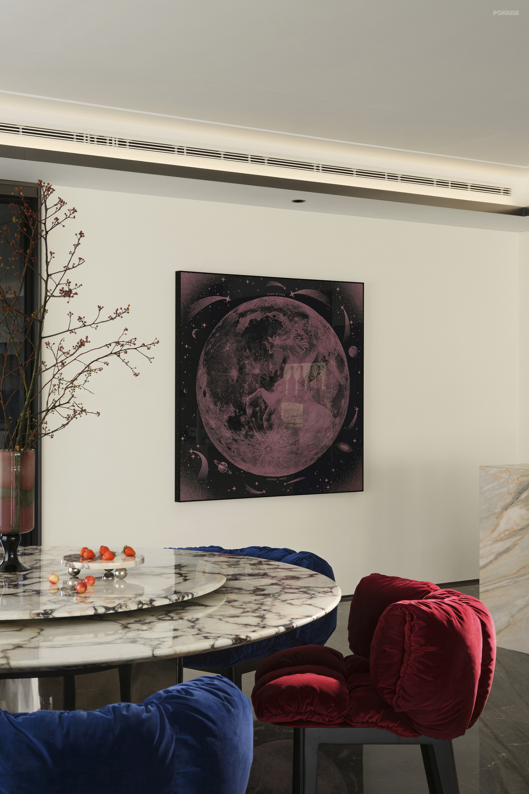 空间里的每一处留白,也是我们想要刻意强调的,家需要一定的空间随着人一起积累、生长,在未来的慢慢岁月里,慢慢填充喜爱的物件。用艺术收藏品,从中升华了展示属性。