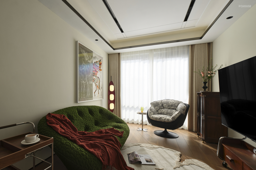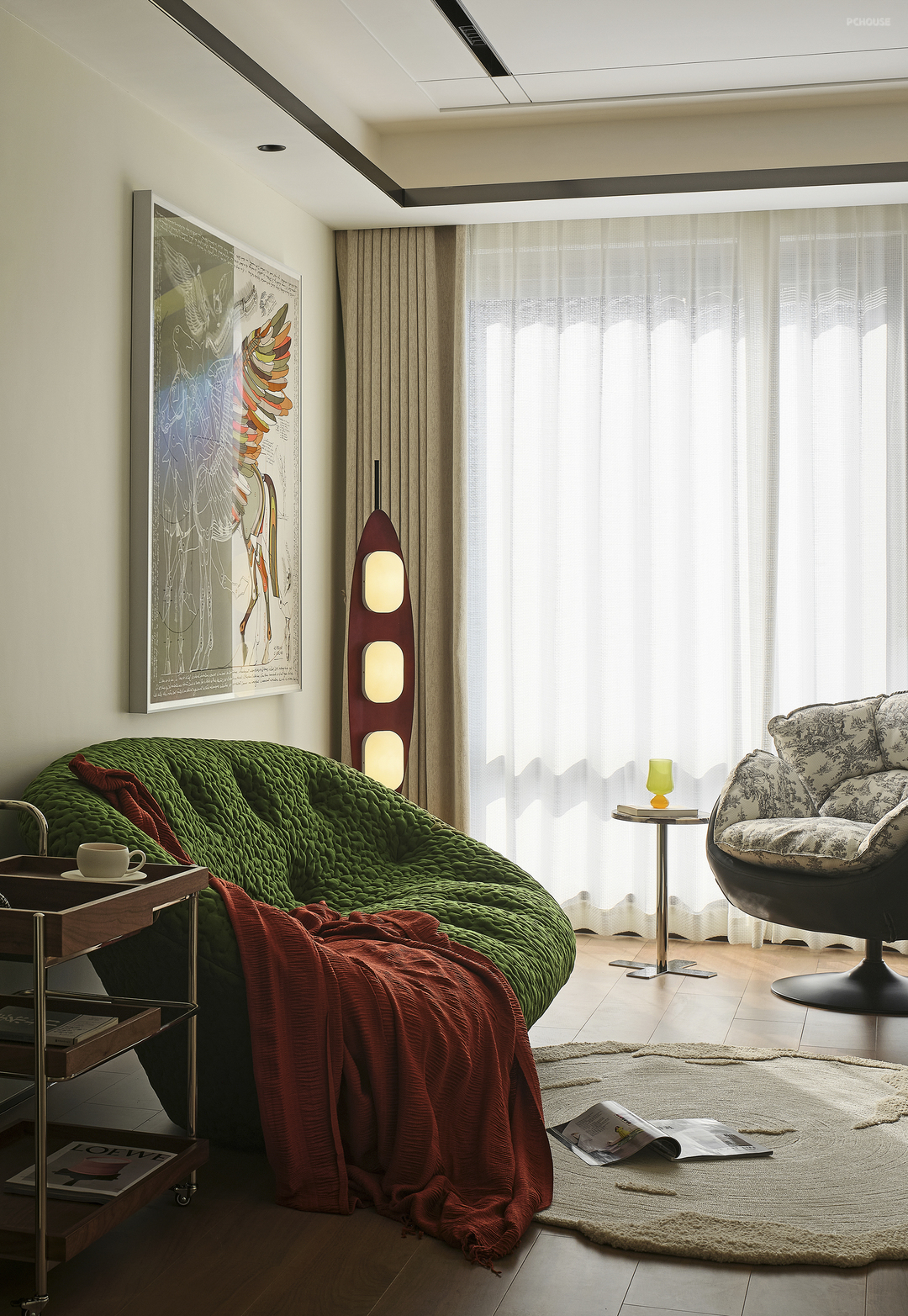 艺术气息弥漫整个摩登空间,包容、随性的生活理念也在此间蔓延。在这个空间中,摩登空间主要展现为“隐秘”。明明暗暗的光线变化与人同行,朦胧与清朗交织,虚实交织的设计笔触洋洋洒洒。