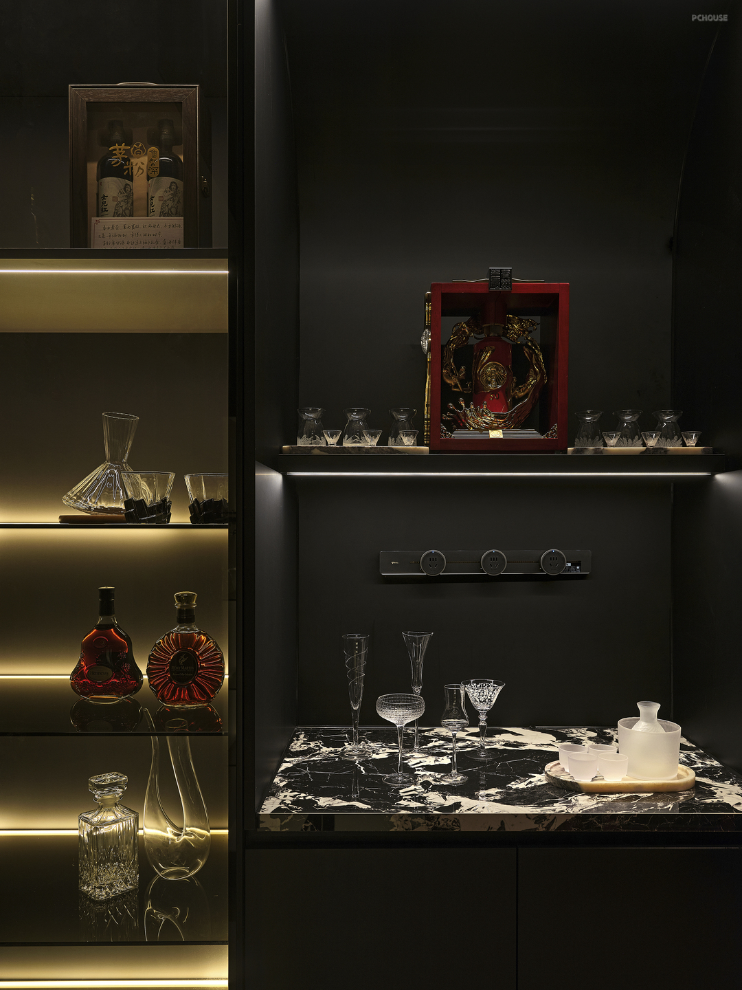 设计师根据业主的喜爱,专门打造一处爱马仕装裱丝巾墙、LV联名草间弥生装裱丝巾墙,红酒白酒雪茄珍藏区。按照喜欢的方式,做着喜欢的事情。时光或许走的很快,但生活得要慢慢细品。