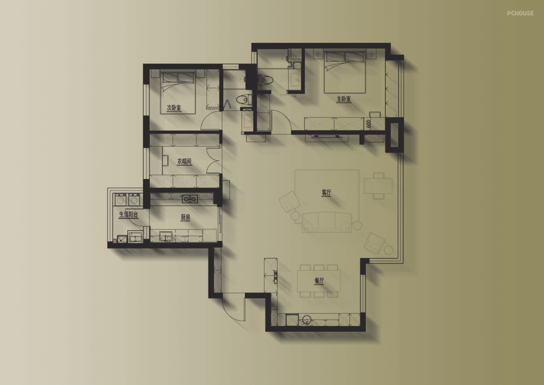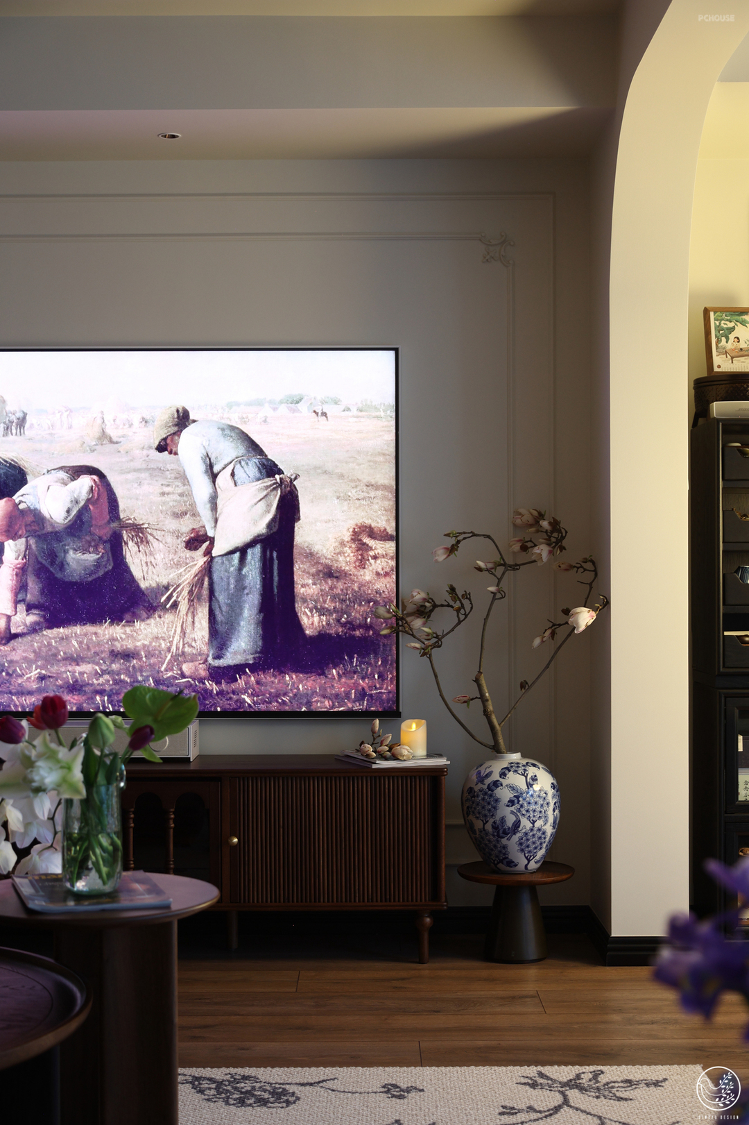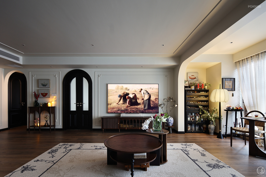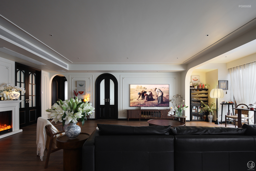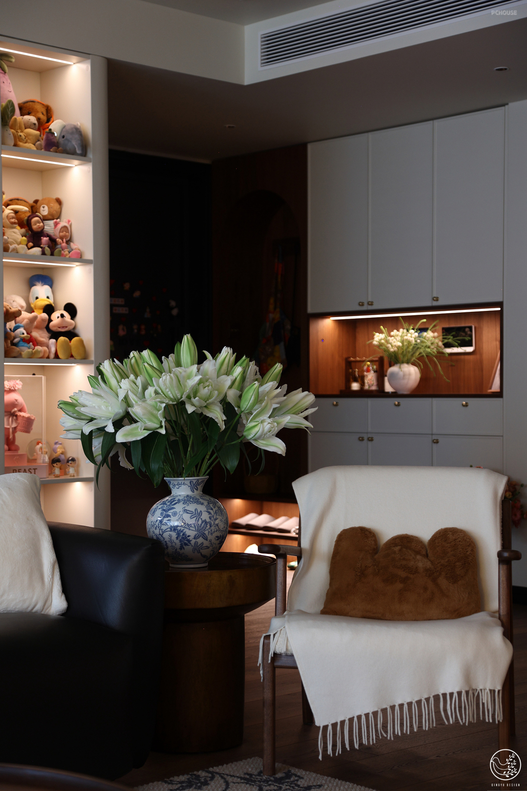 因为餐厅有了新的位置,所以客厅变得很宽敞了,也就可以有更松弛的布局与呈现。