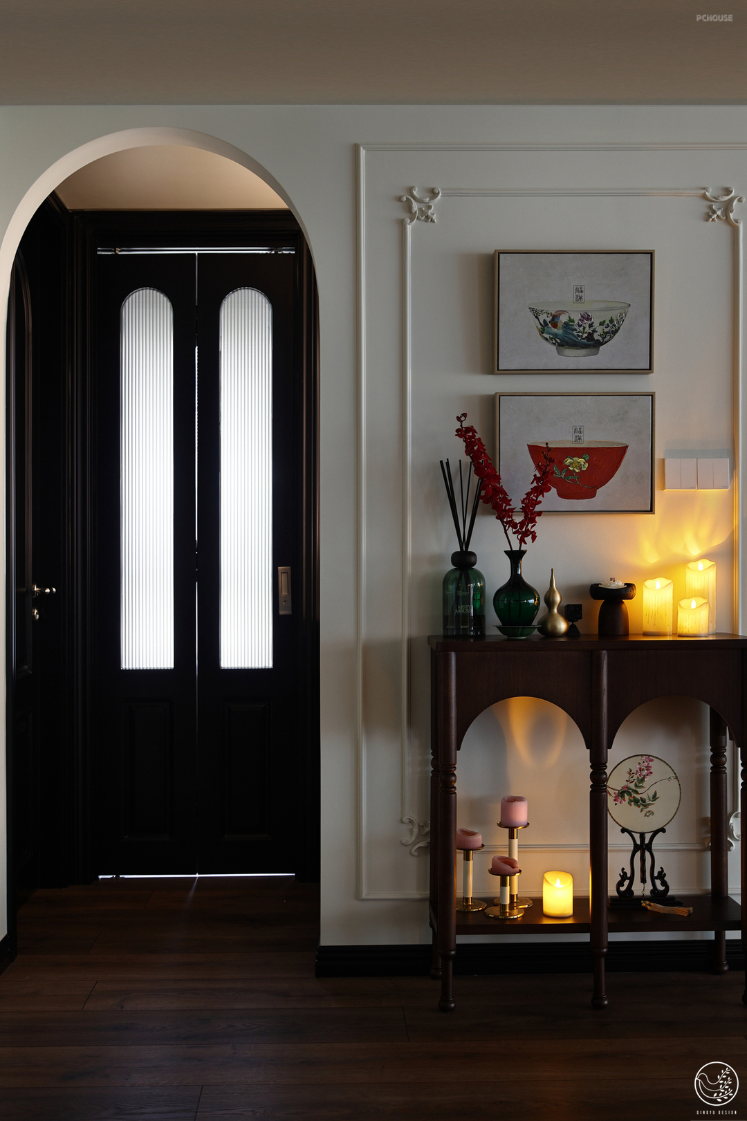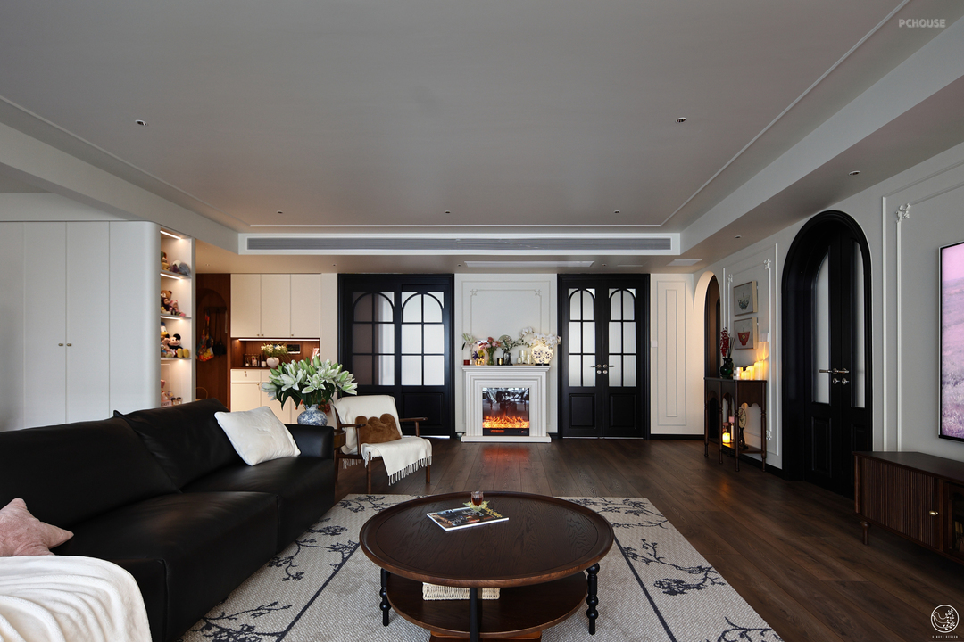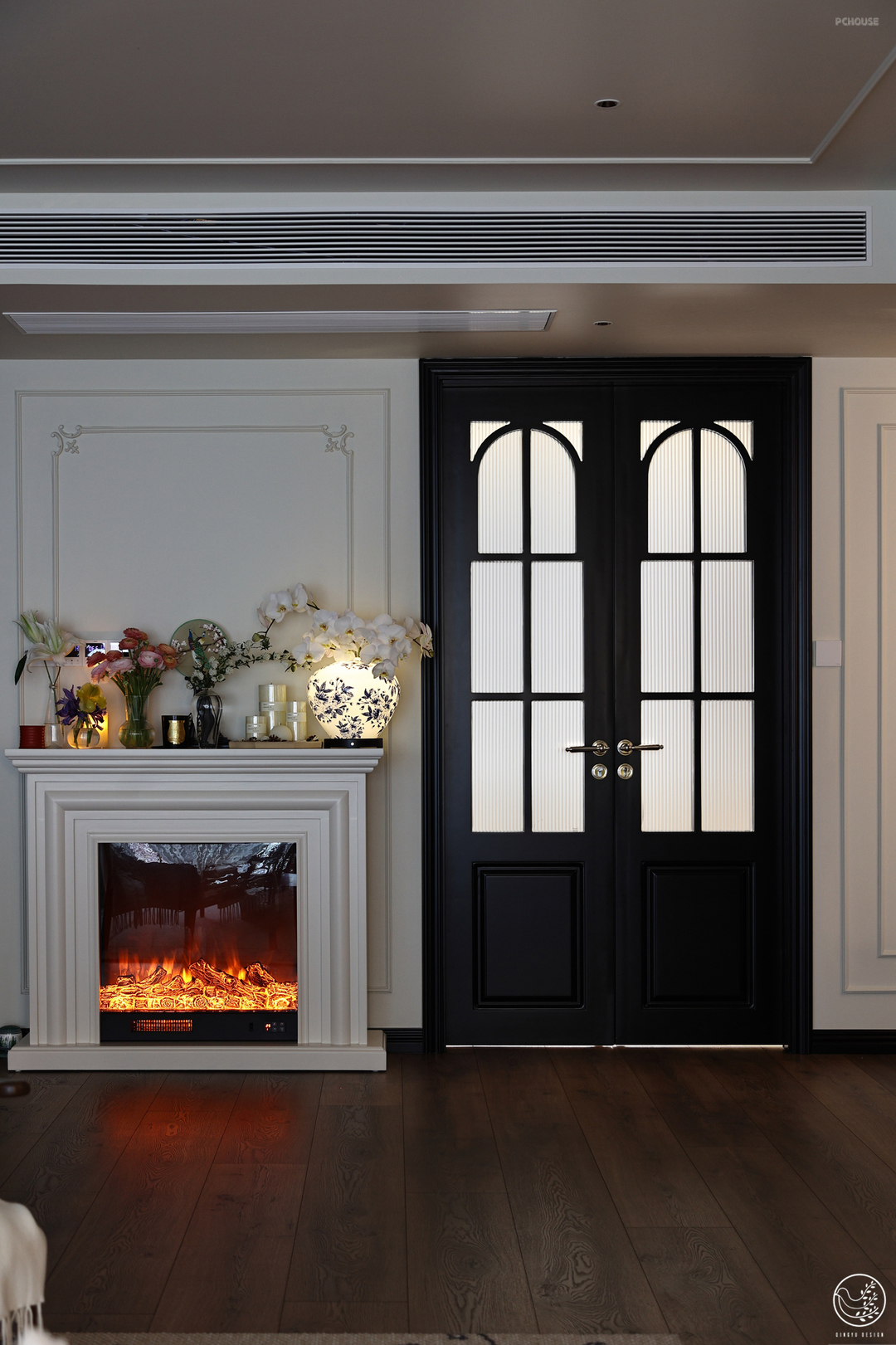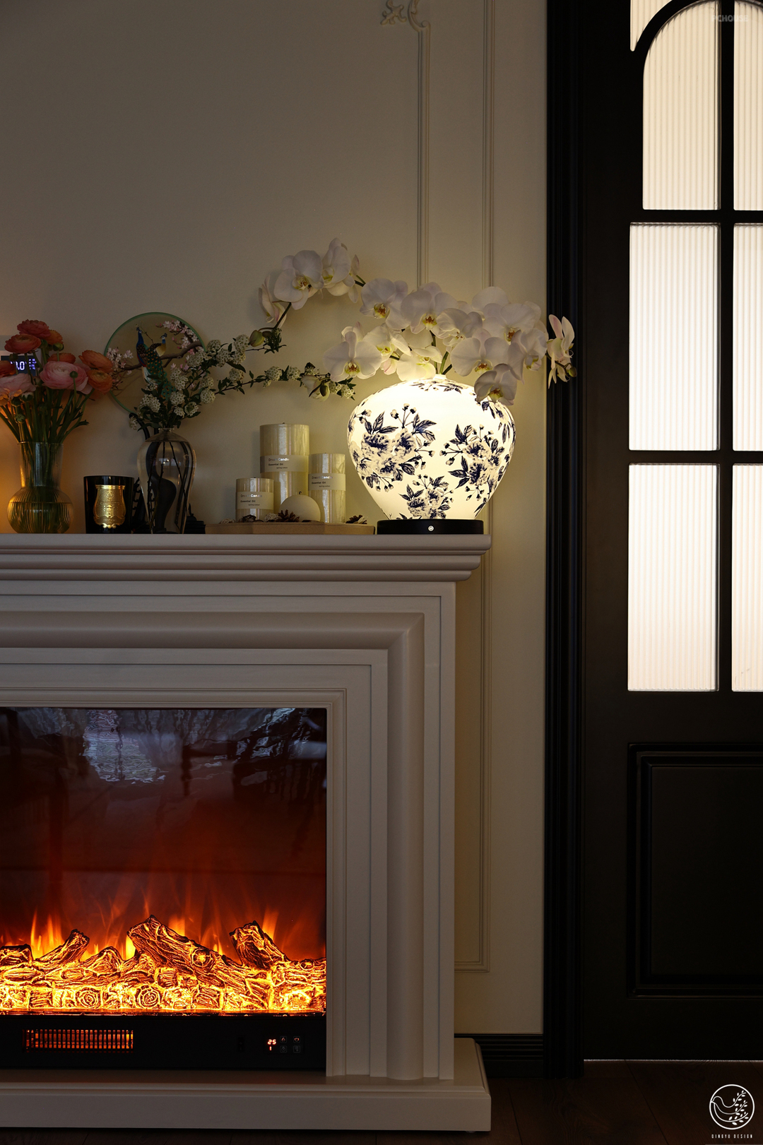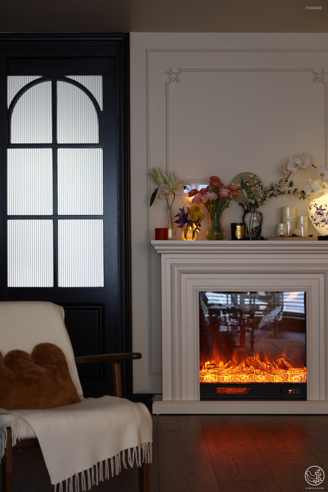 设计师在过道中间加了一组壁炉,为空间增添了一丝浪漫与趣味,冬天来时只要点亮它,好像一整个家都会立刻暖和起来。