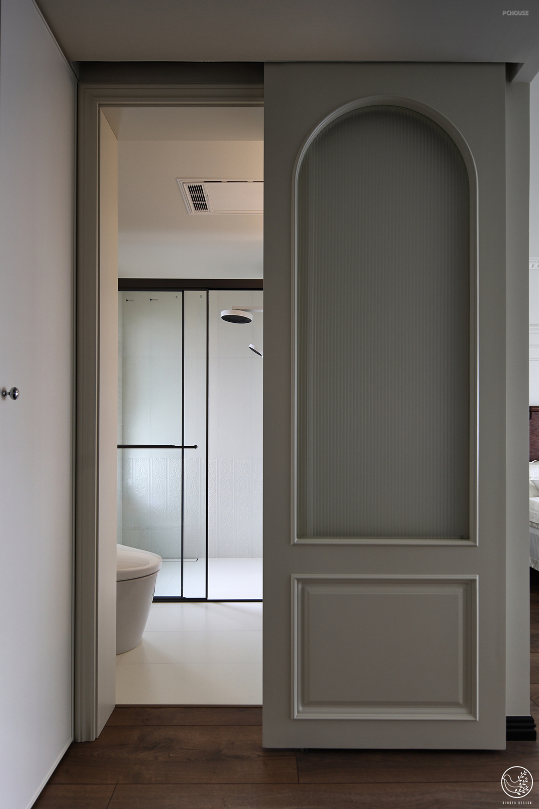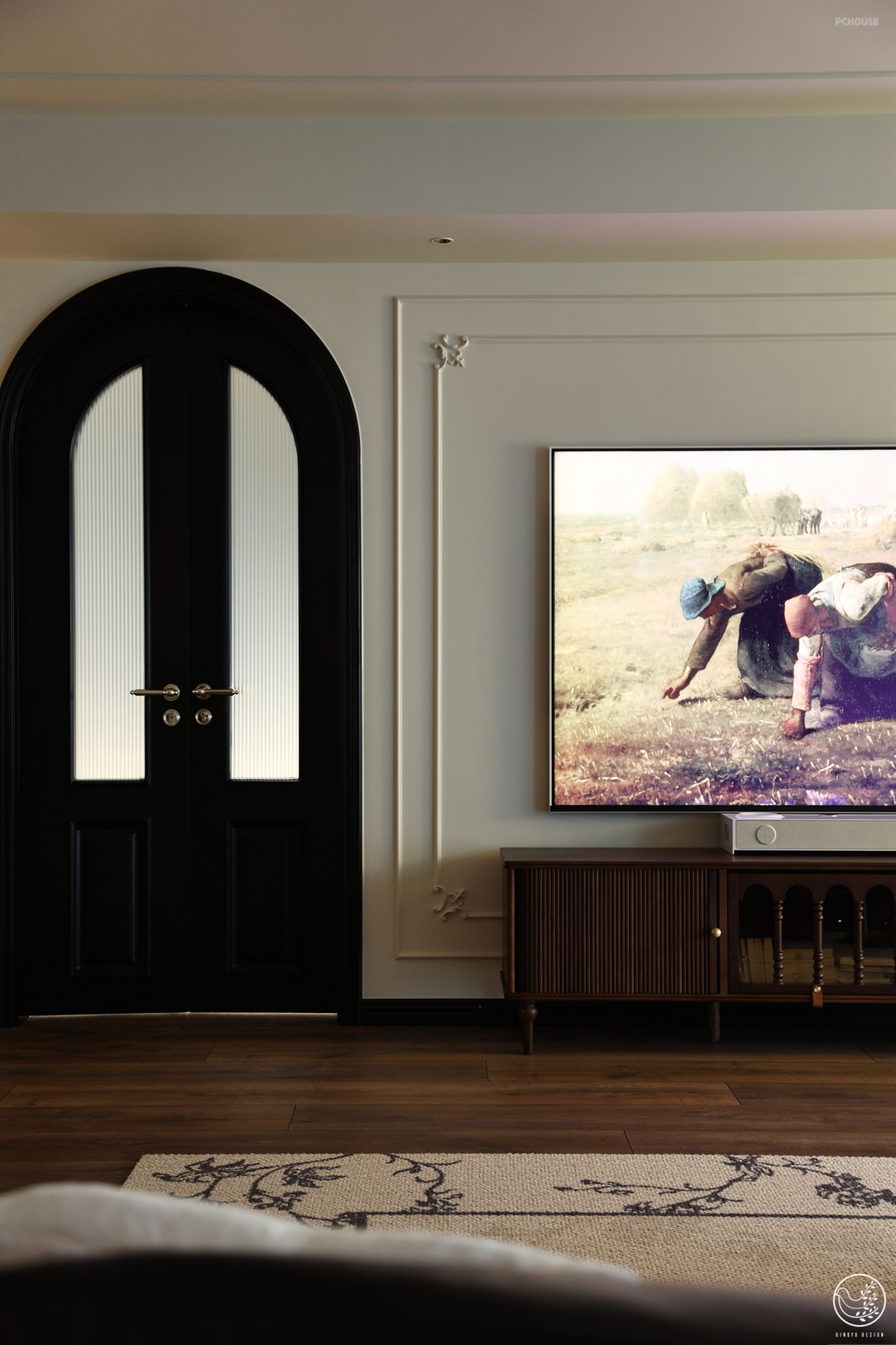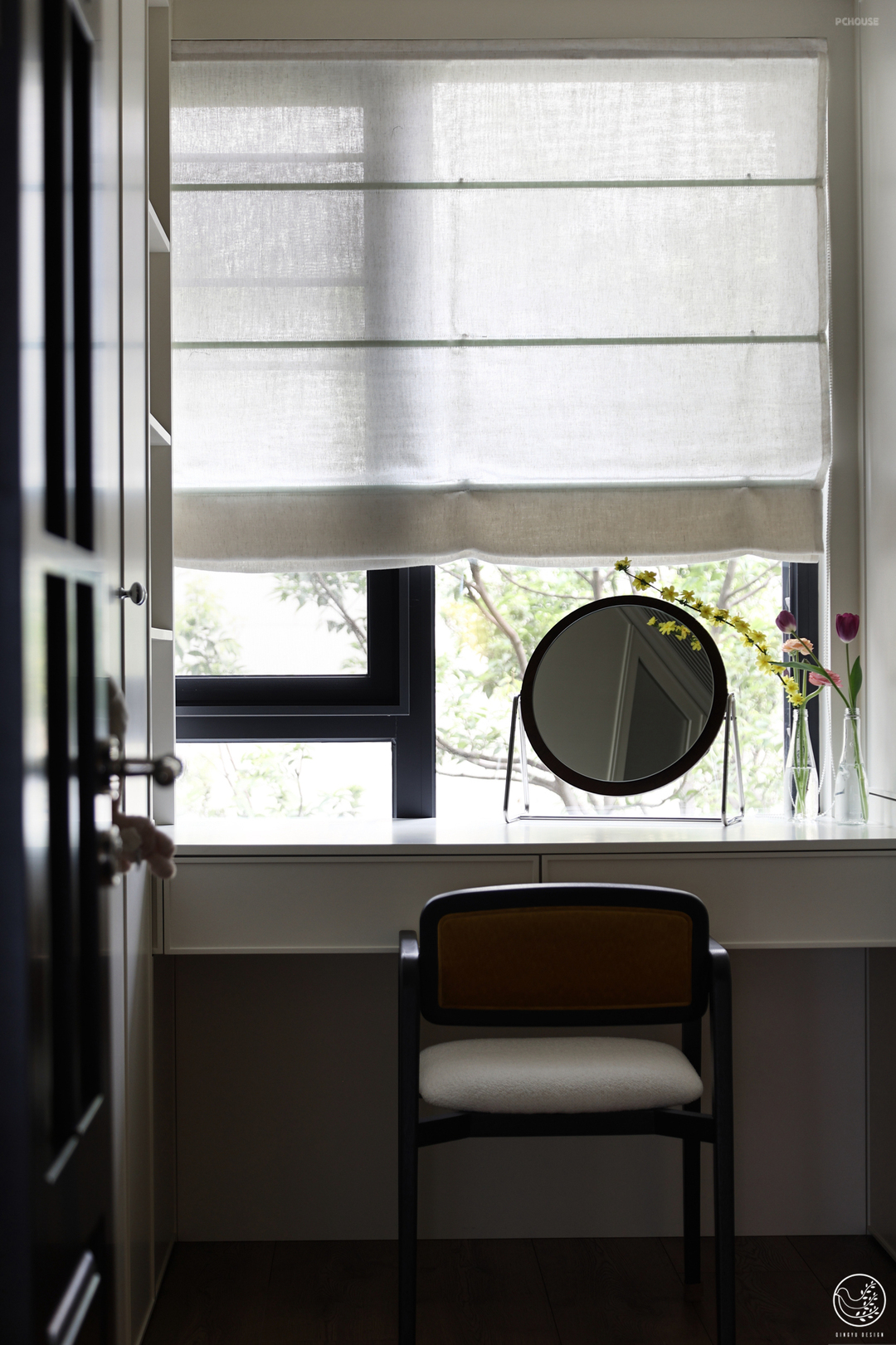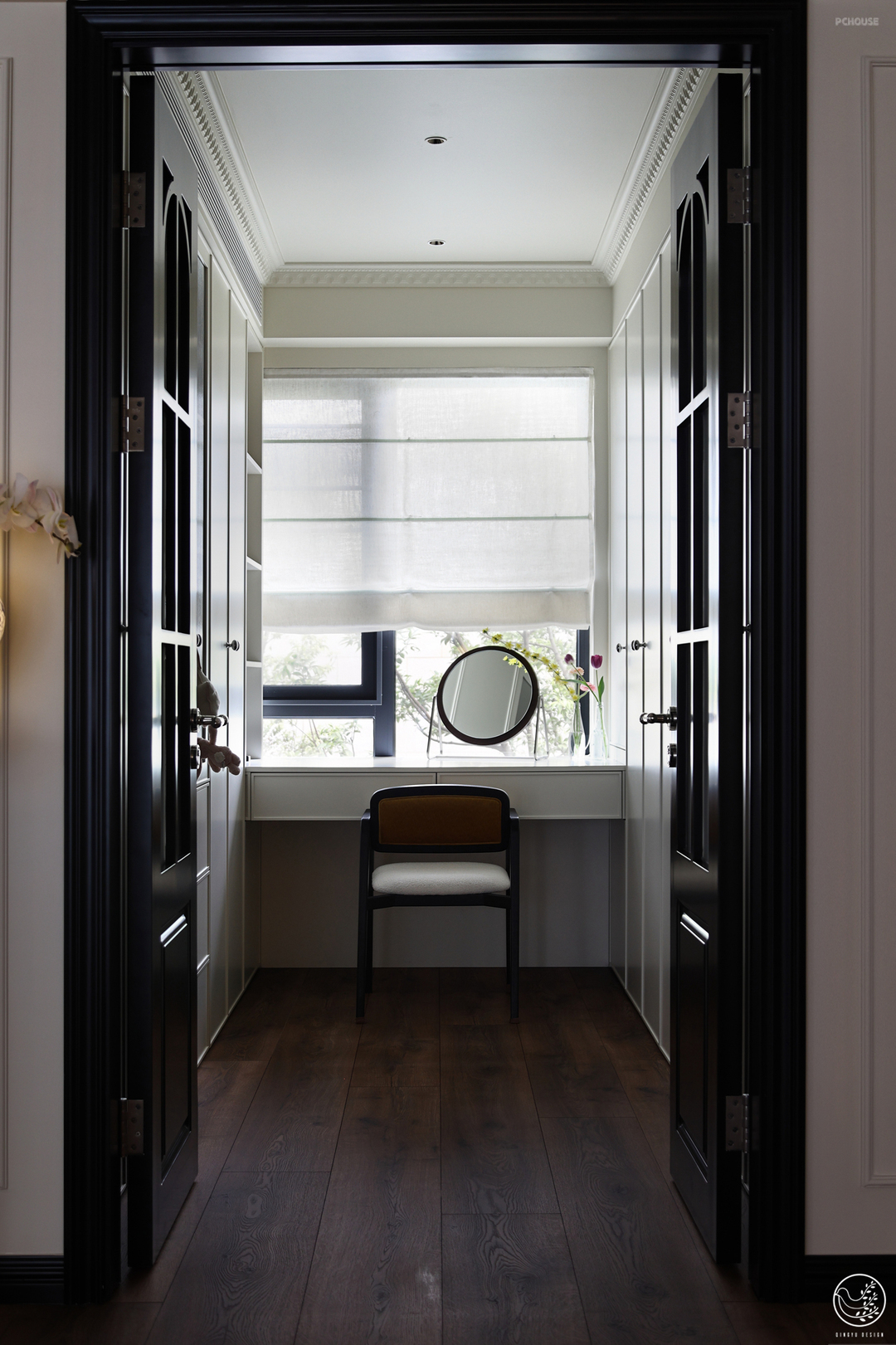 设计师没有在主卧室铺陈过多的造型,只用石膏线条做了乳胶漆同色,但寥寥几笔勾画出的效果也是精致有神韵。