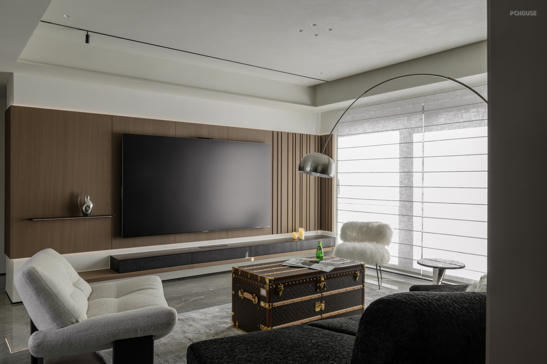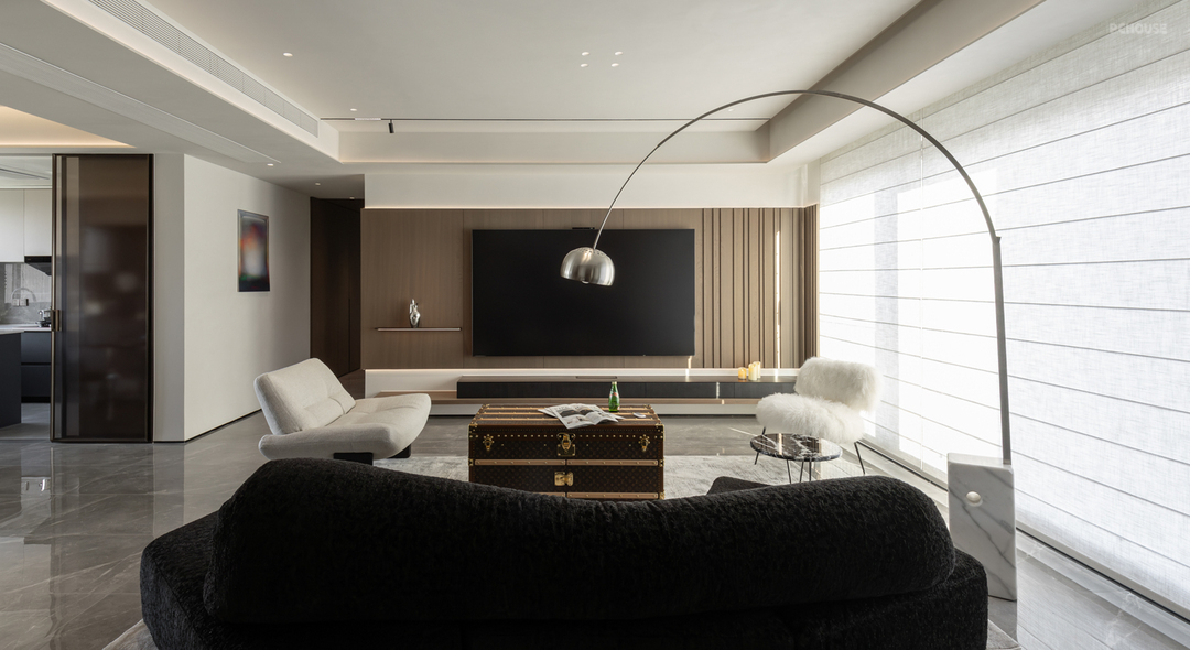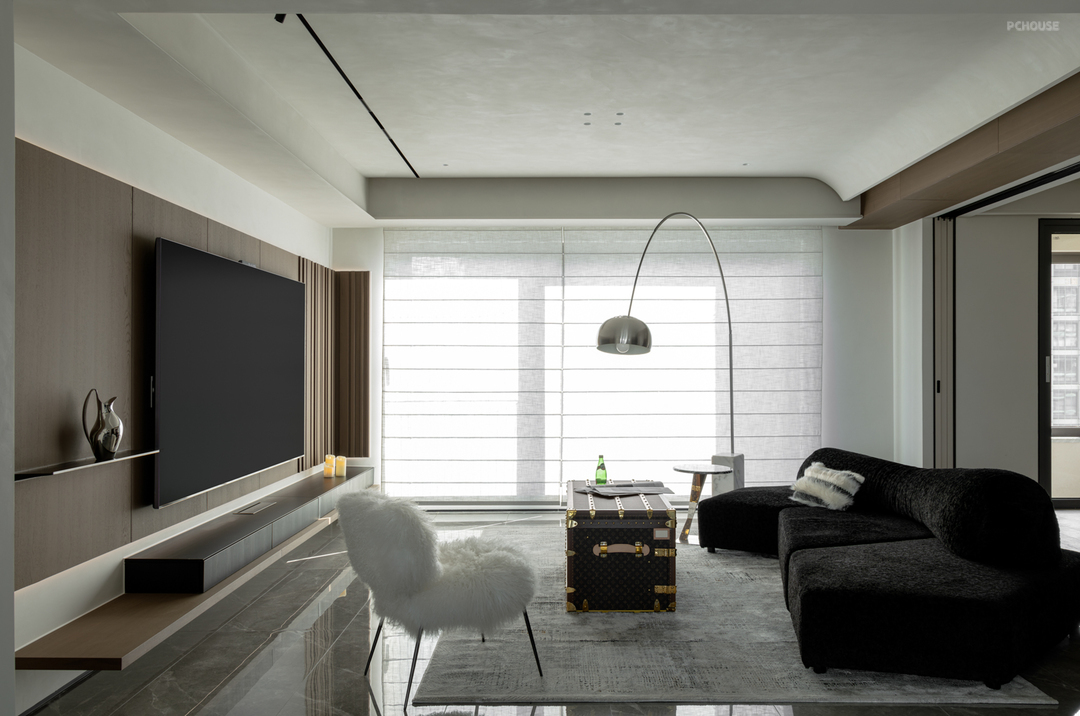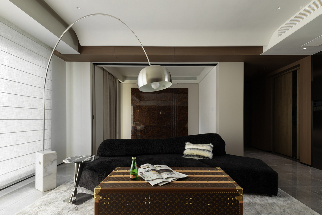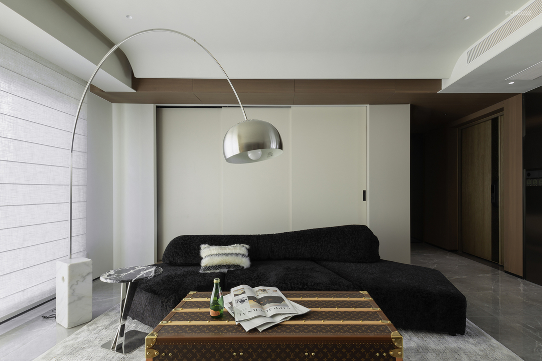 以可开合的多功能房作为背景,使客厅拥有更舒适的尺度感。