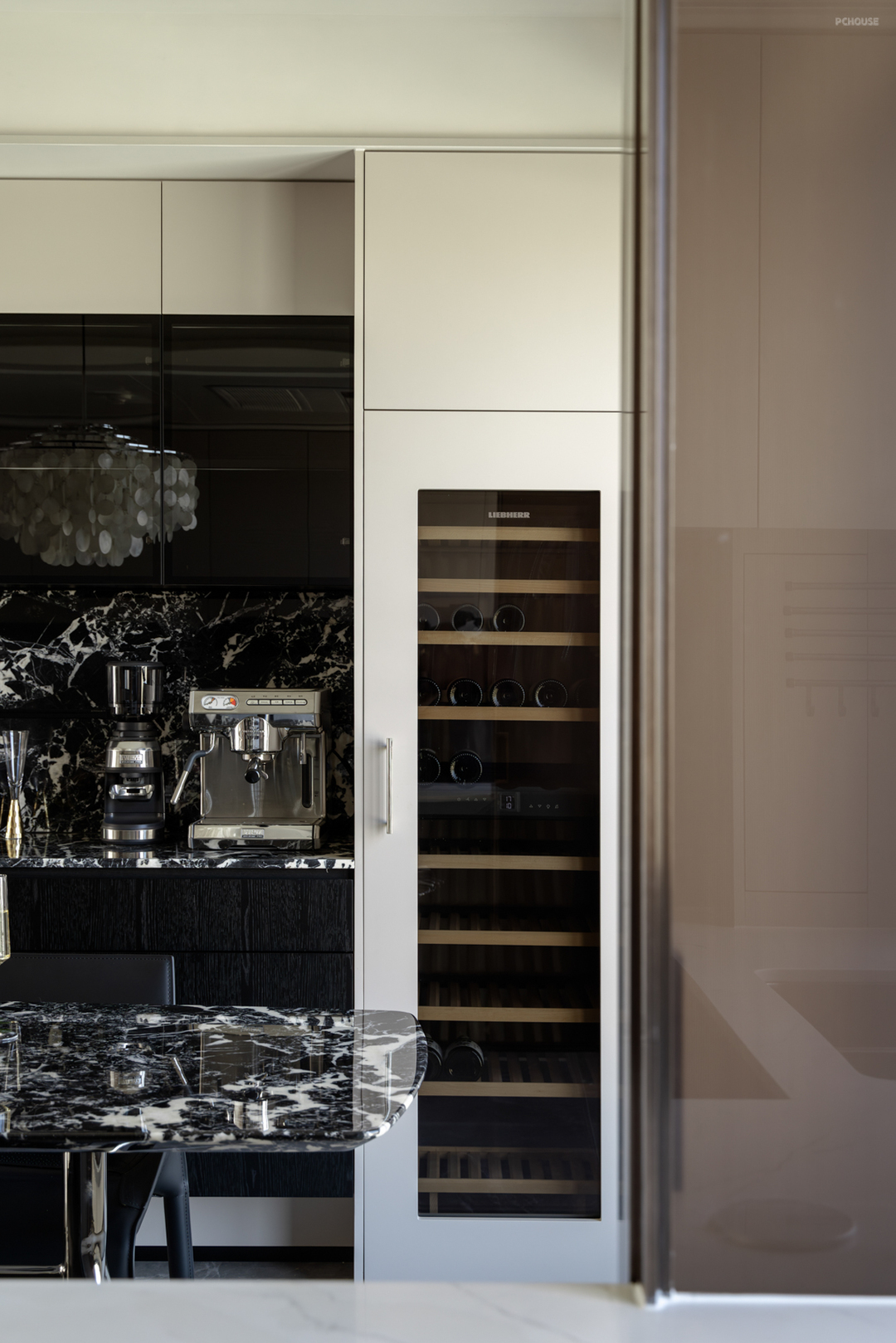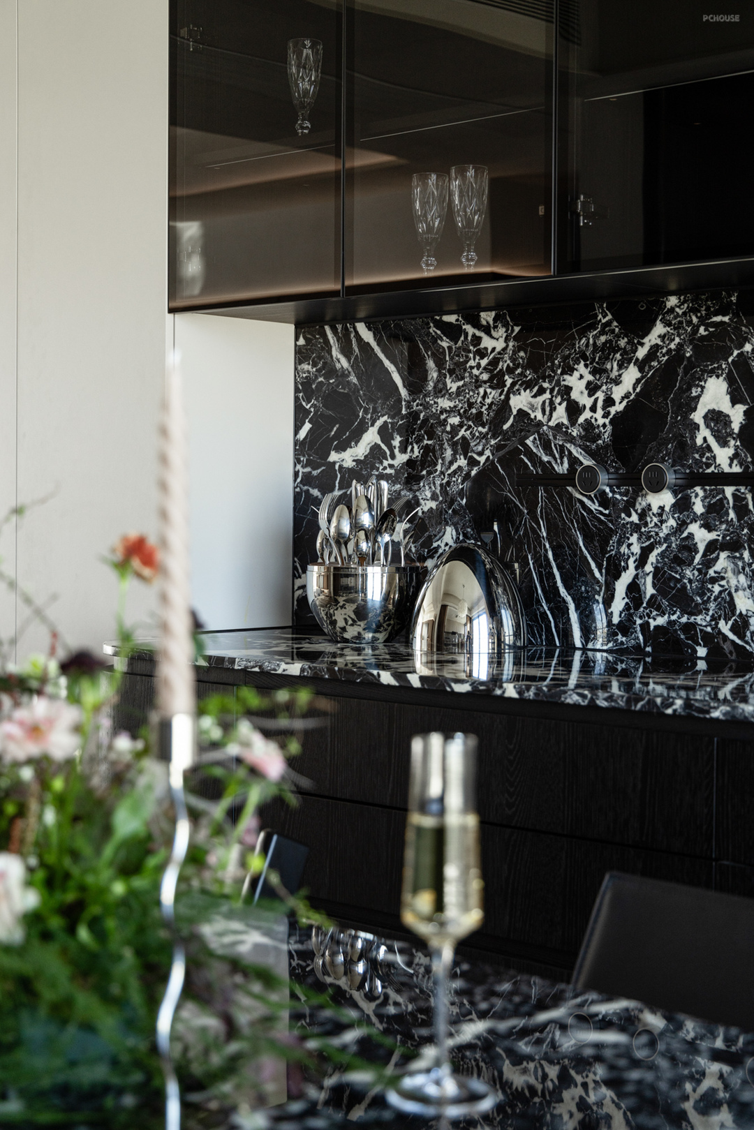餐边柜用不同的尺度归类着用餐相关的物品,或开放、或氤氲、或隐藏,其中各有章法。