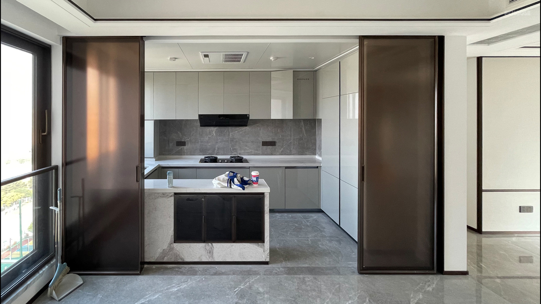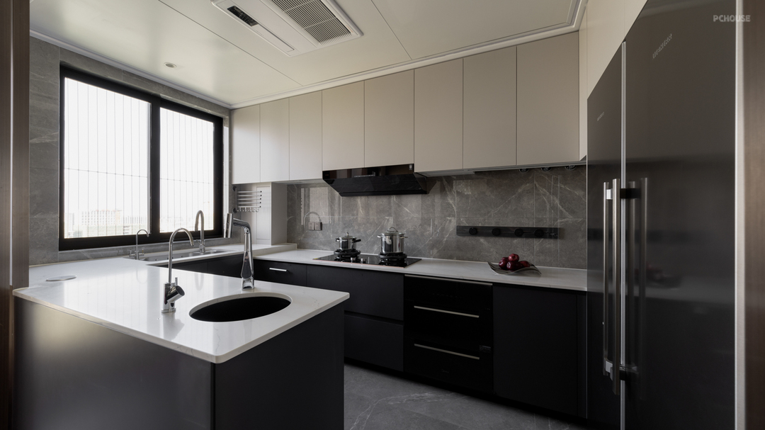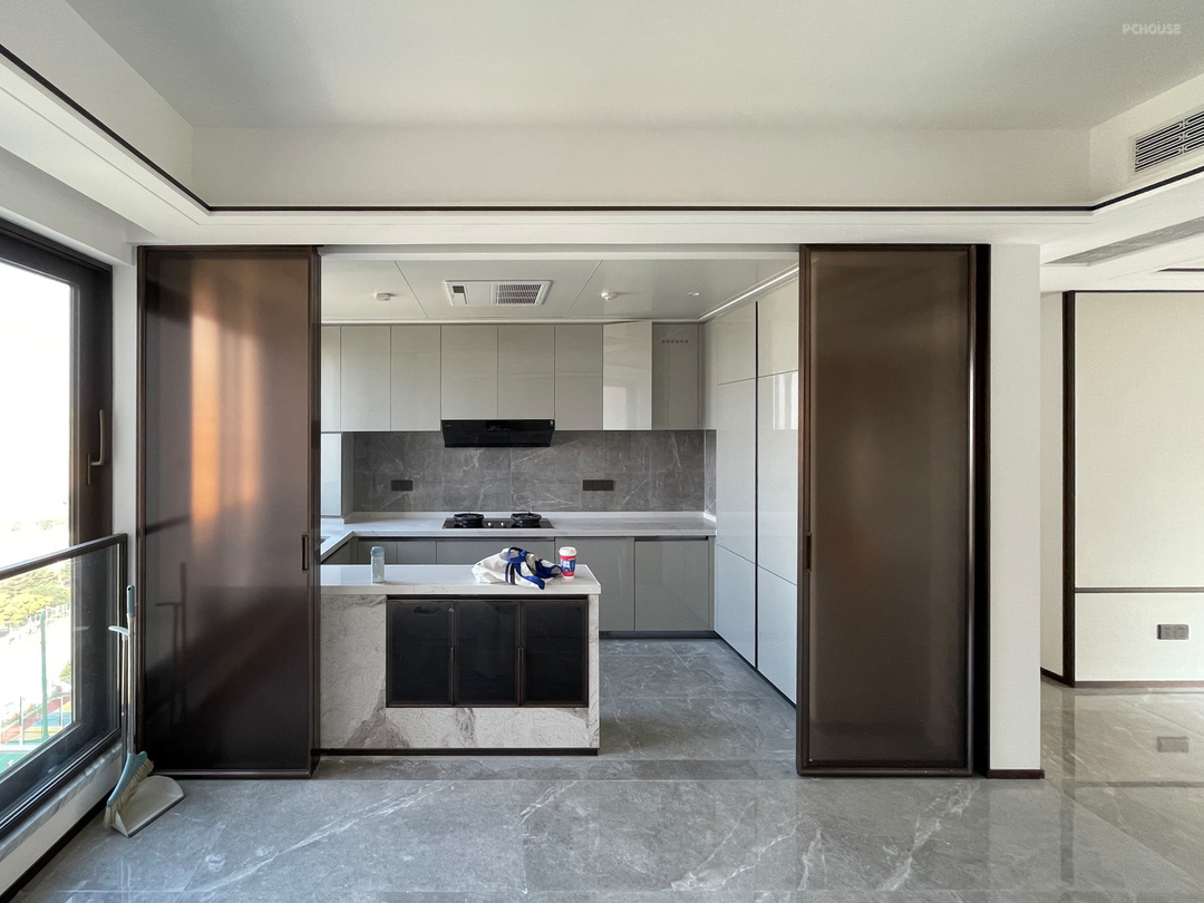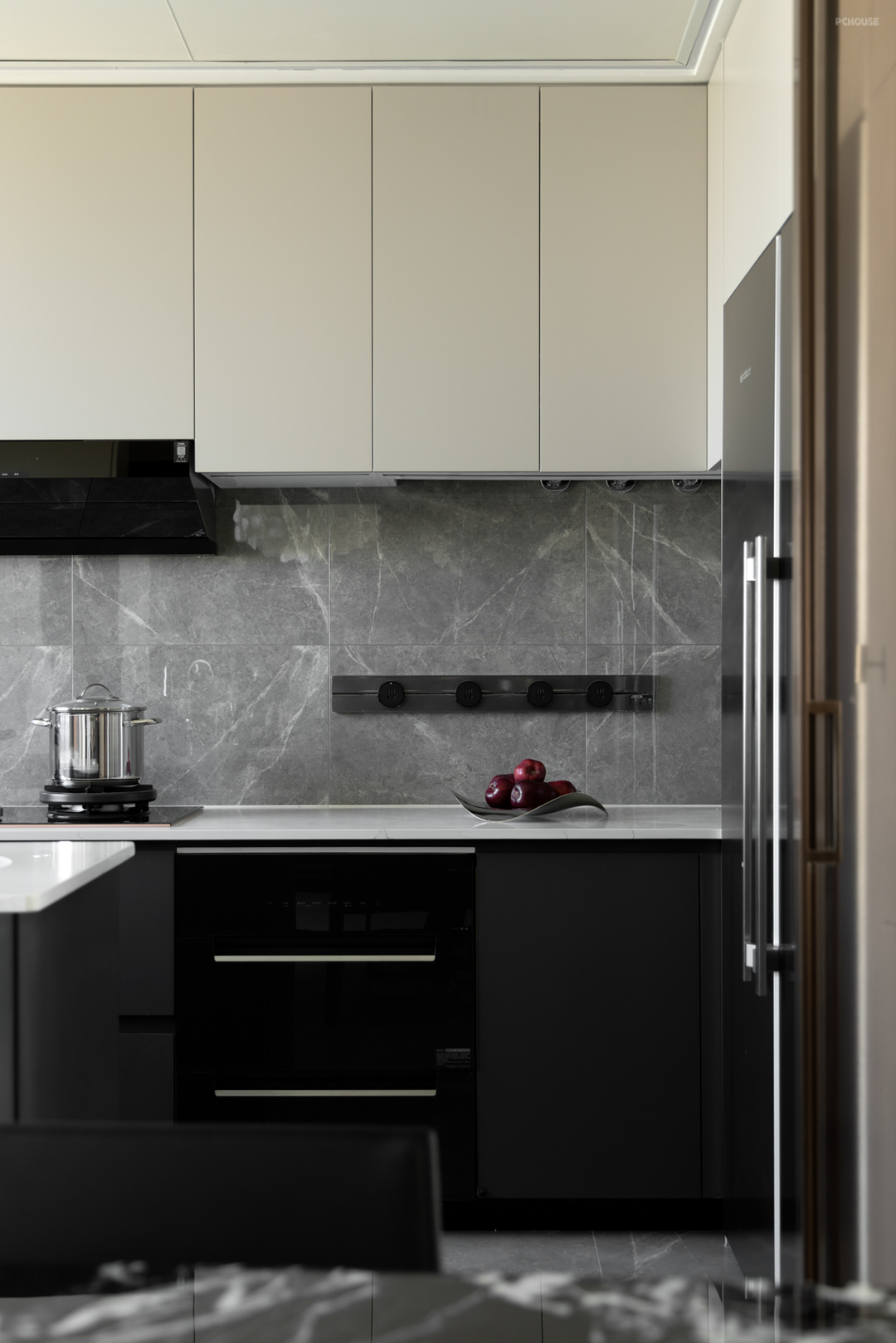 功能性空间容不下任何鸡肋的设置。原户型利用率偏低的厨房岛台柜在调整后,增加了小水池,也让柜体的深度达到常规储物尺寸。