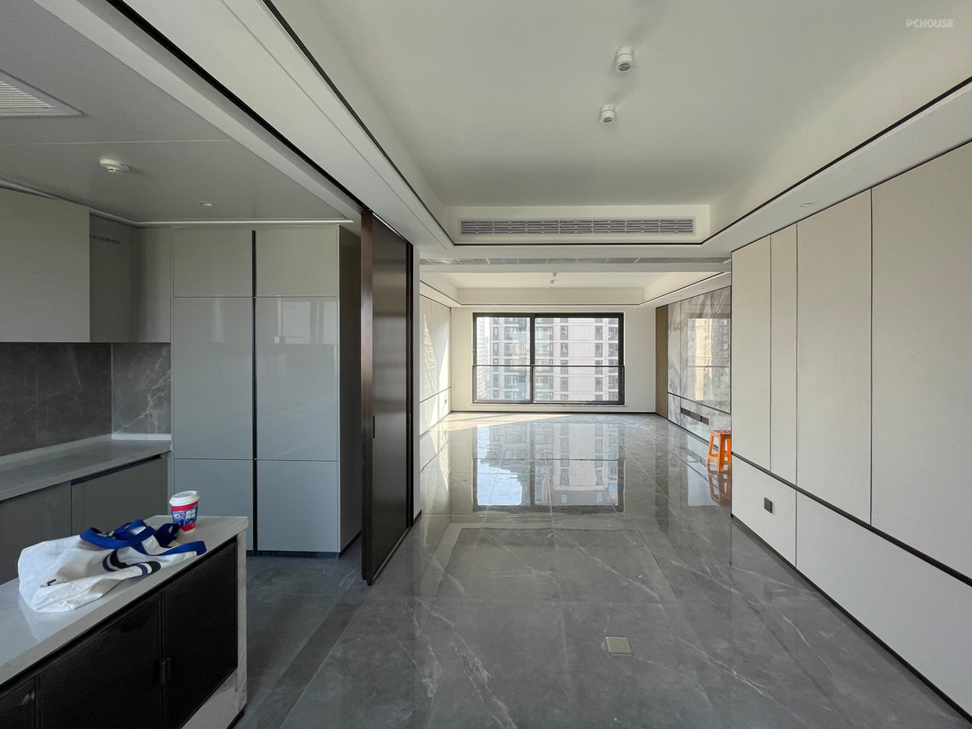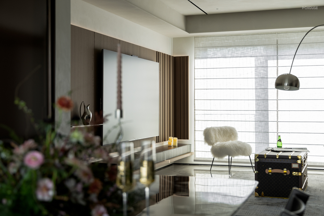曾有过精装改造经验的郭小姐明白,只通过软装搭配,是无法让千篇一律的精装房完全贴合自己的居住需求的。于是,在设计师王婷的提案下,这个空间冗余的精装房被改造为有着都市时髦感的大平层住宅。