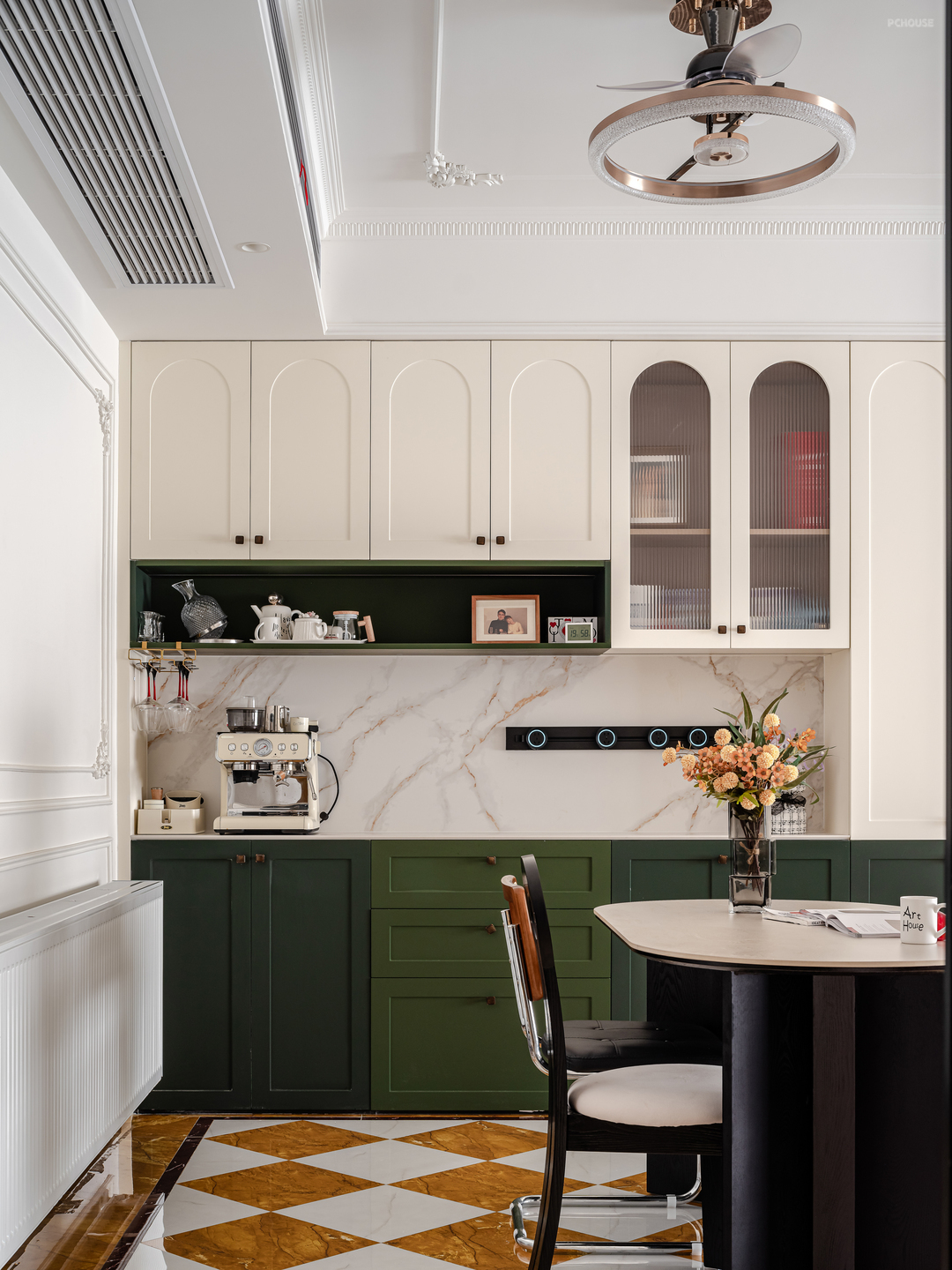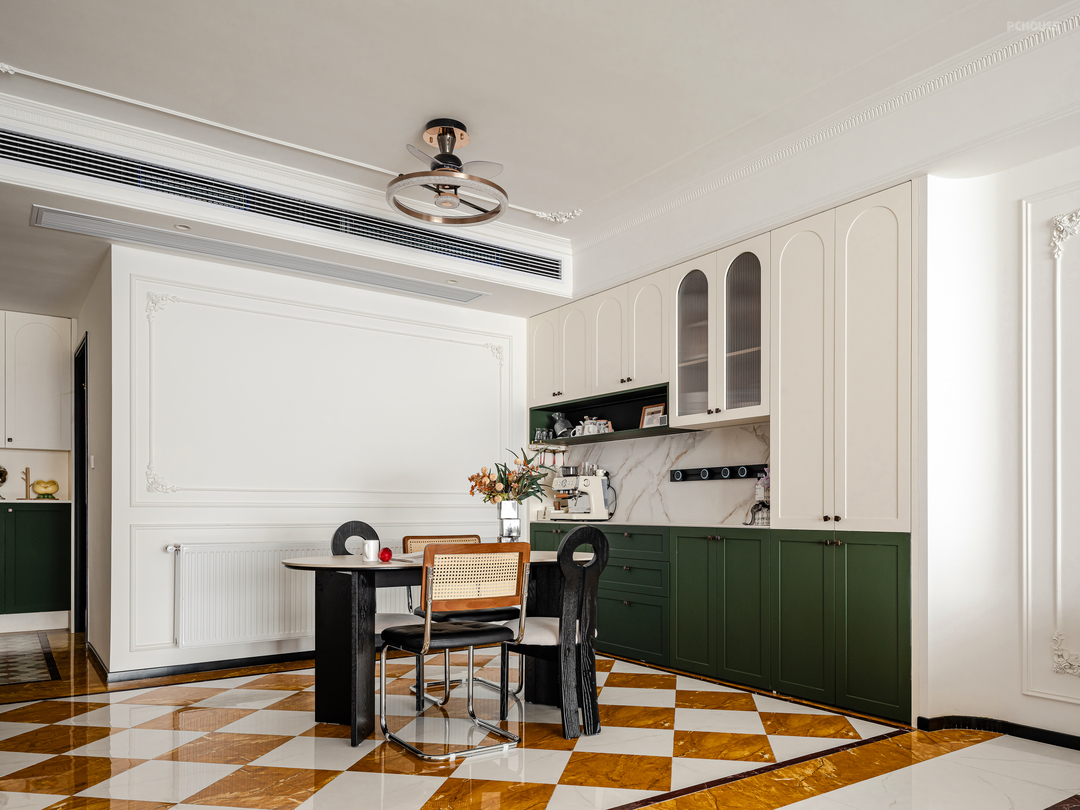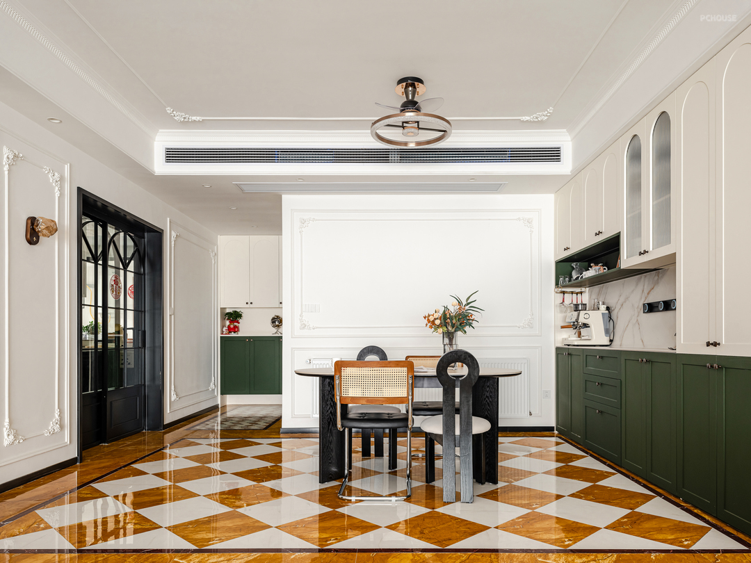 餐厅处未使用艺术内吊灯,而是有了最实用的风扇灯,一切以实用为主,业主能接受的范围出发