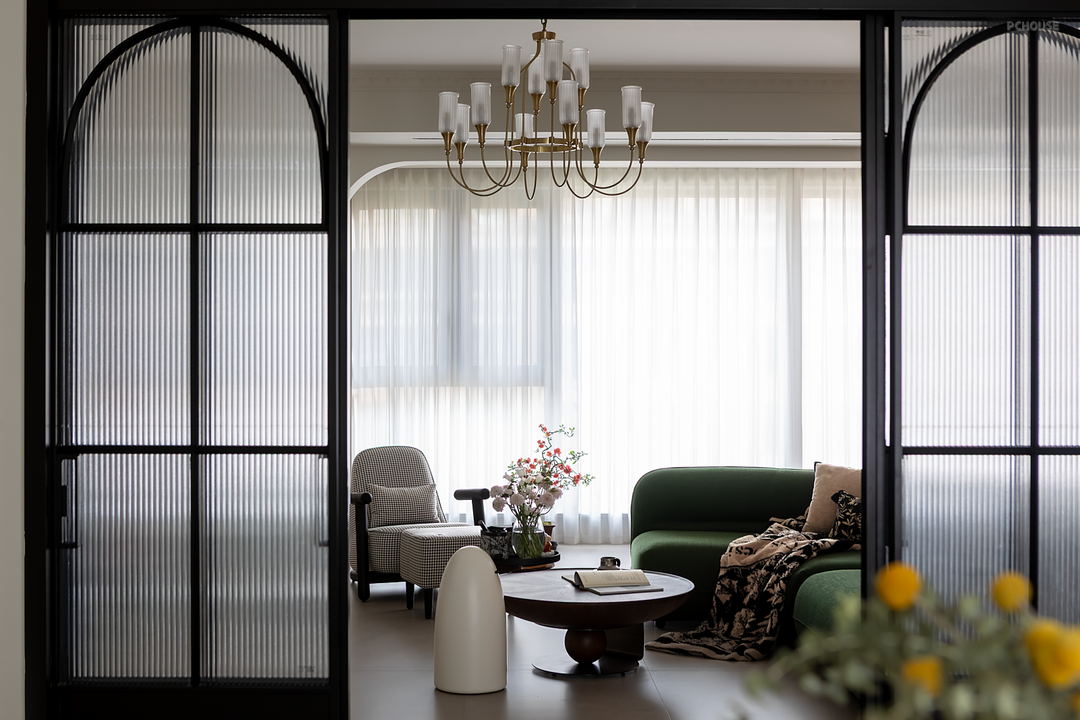 书房与客厅用4扇仿古门做区分,平时打开时,客厅就是南北通透,更显宽敞大气。