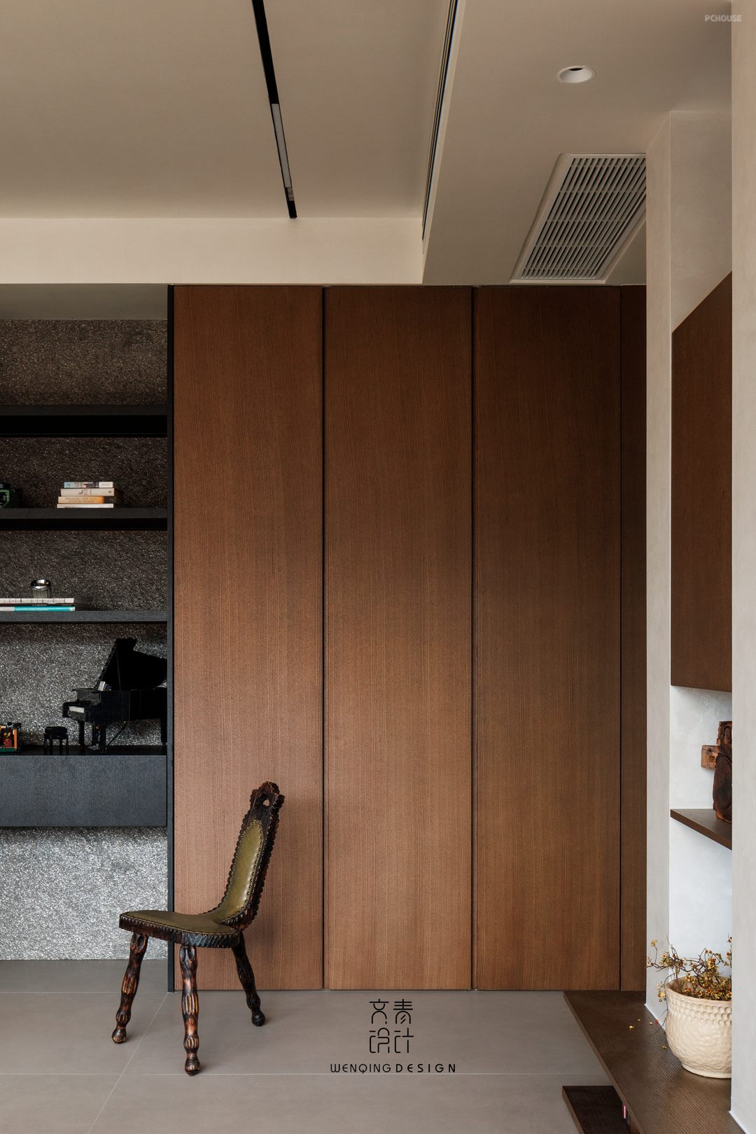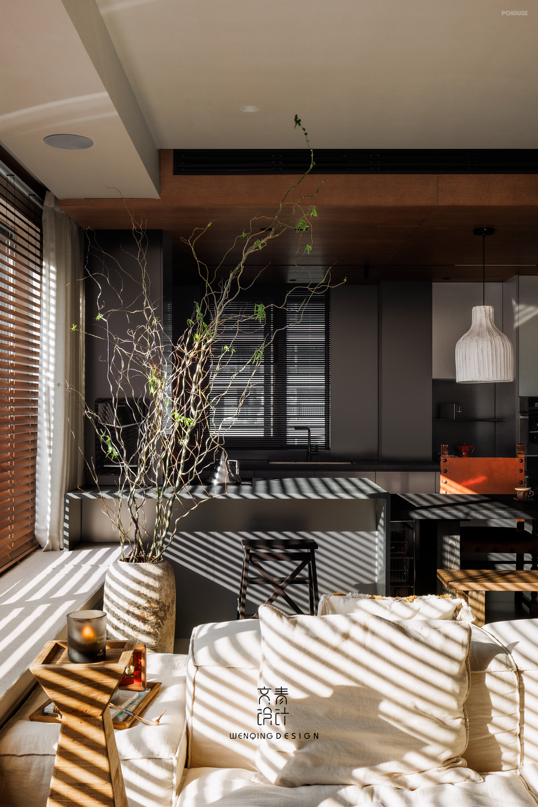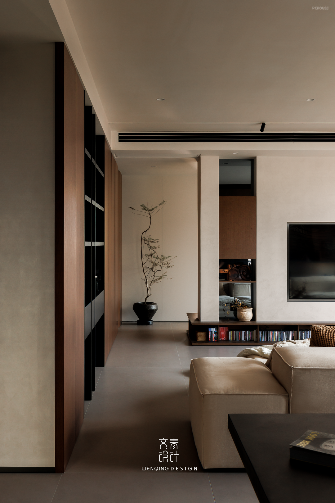 前言: 这是位于杭州的一套住宅,原始户型四室二厅格局,缺点是精装修交付,原房间数量过剩且容易空置,基于业主需求和实际情况,我们对原始结构做了局部调整,利用大横厅的通透感,客餐厅相结合的空间,拆除非承重墙体,打造客餐厨书一体化LDKB空间,通过木纹和不锈钢色营造品质感住宅。