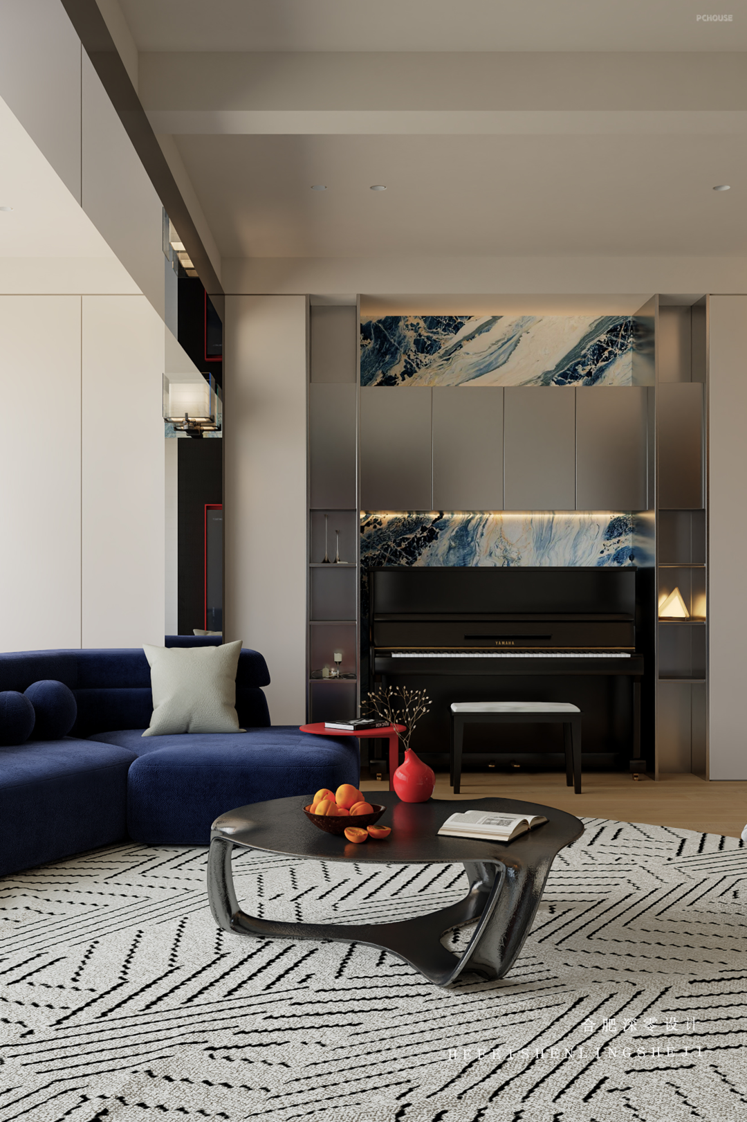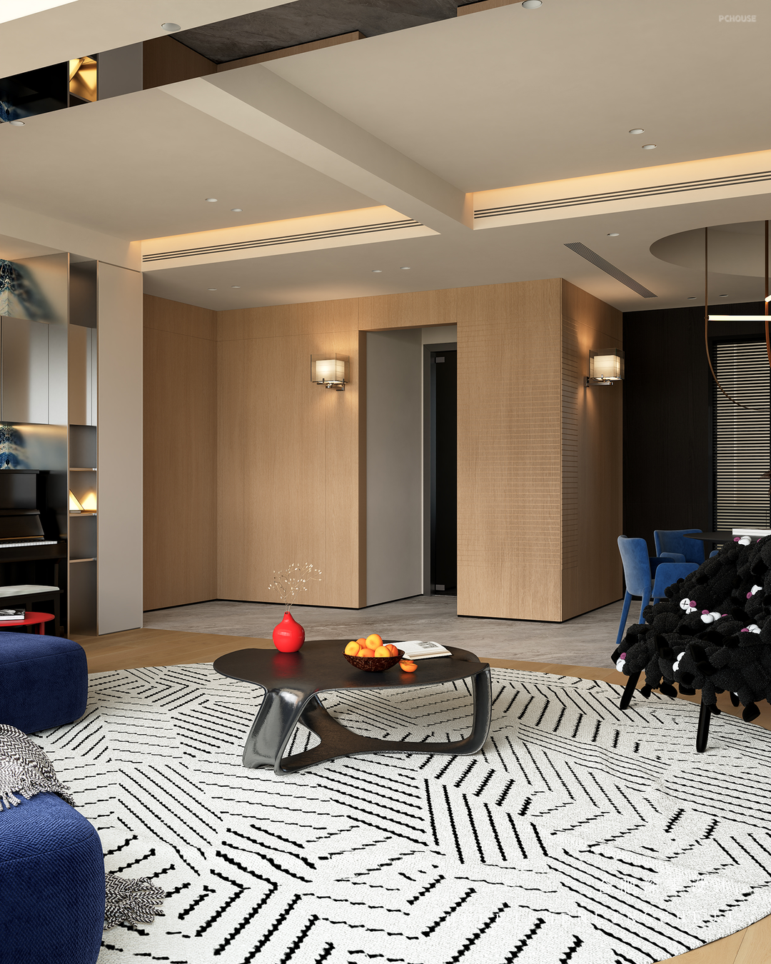 木饰面隐形门包裹住每个疲惫的夜晚,与线条絮语,一同归于黑白琴键下岁月永寂的绵响。