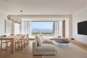 温润的框架与家具体块互为递进,客厅、书房、餐厨柔和过渡,同时搭配智能家居系统,构建连贯且灵活的居住形态,回归人与人、人与空间交互的核心。
