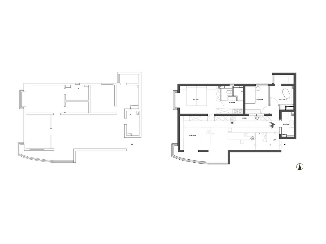 Focus on the release and remodeling of the large space of the guest restaurant, completely open the space of the original living room and bedroom, blur the boundary, kitchen out, living room and kitchen form a multi-functional interactive space, presenting the multi-dimensional space layer in the flat layer, with more life interaction combination.