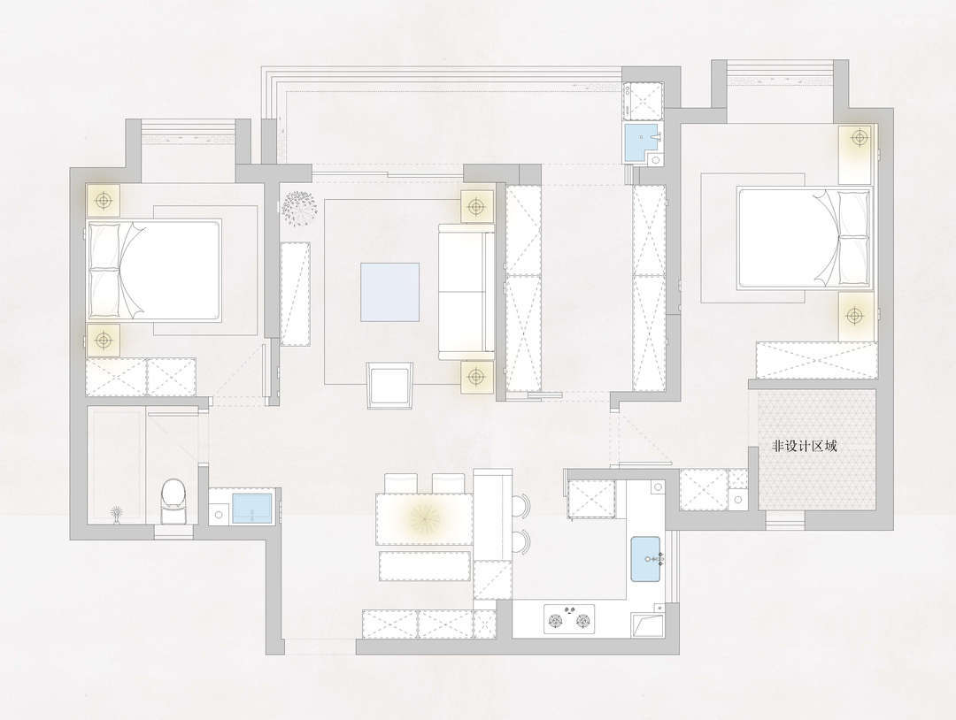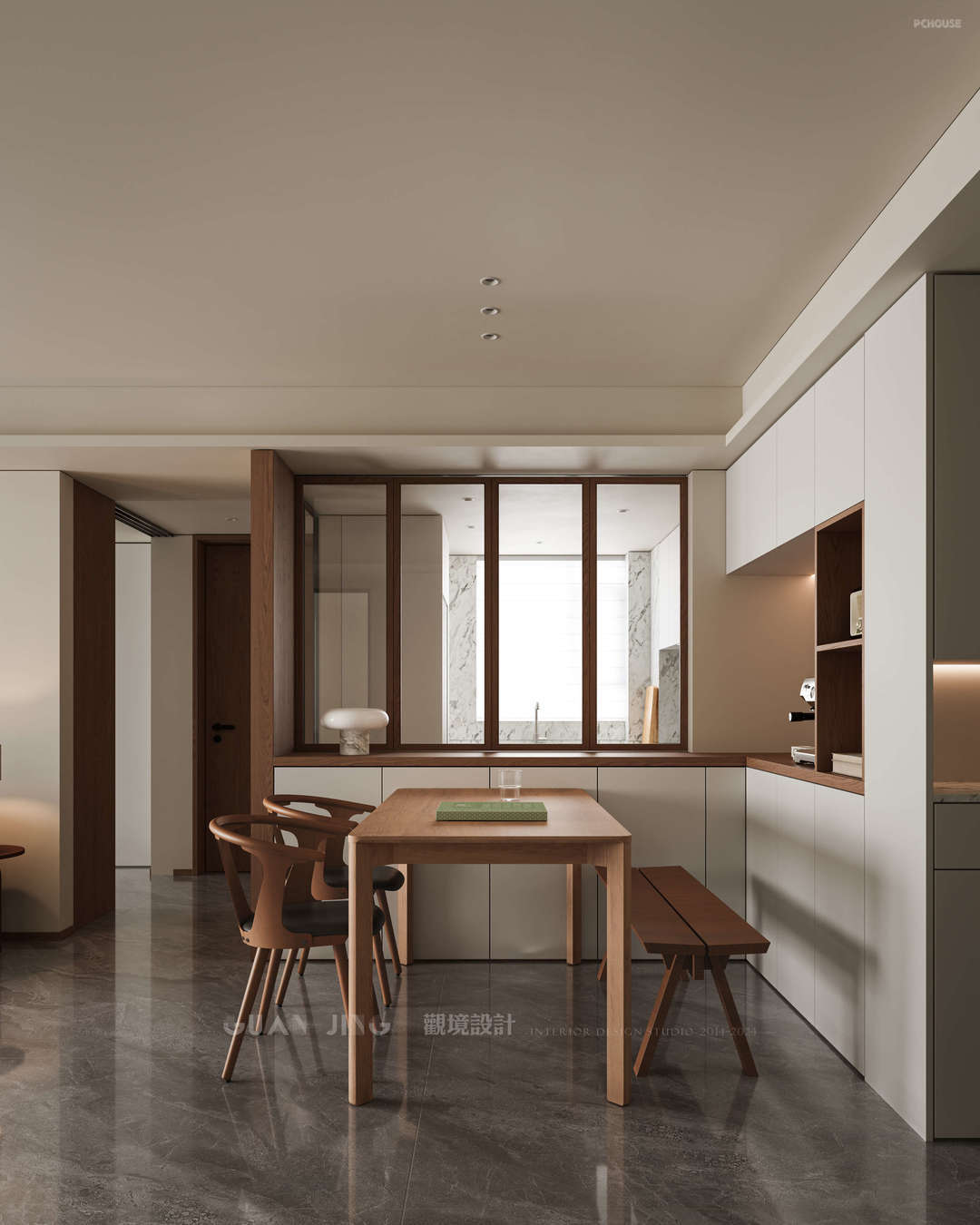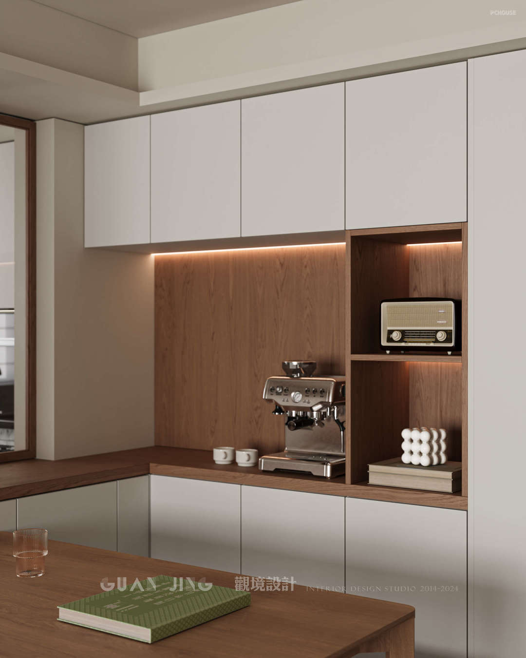 屋主喜欢极简的空间氛围,保留一些原木元素,保留正常两房加一个多功能间格局。希望餐厨动线短的同时拥有一个早餐吧台,但中厨使用时作为封闭厨房使用。将阳台并入室内空间。节约预算的同时希望原始精装能有较大改观。设计师们开始寻找这些想法的设计属性,巧妙地在空间中找到各自功能属性的平衡点,最终形成了极简主义与原木元素相融合的个性化室内空间。