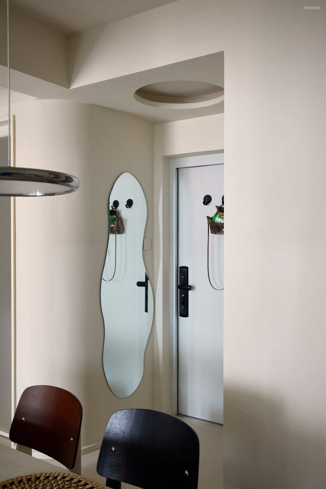 屋主每天回家,第一眼看到的是温暖的光线和流畅的线条,心情瞬间放松。全身镜,不仅实用,还让空间显得更大,出门前随手一拍,都是时尚大片。