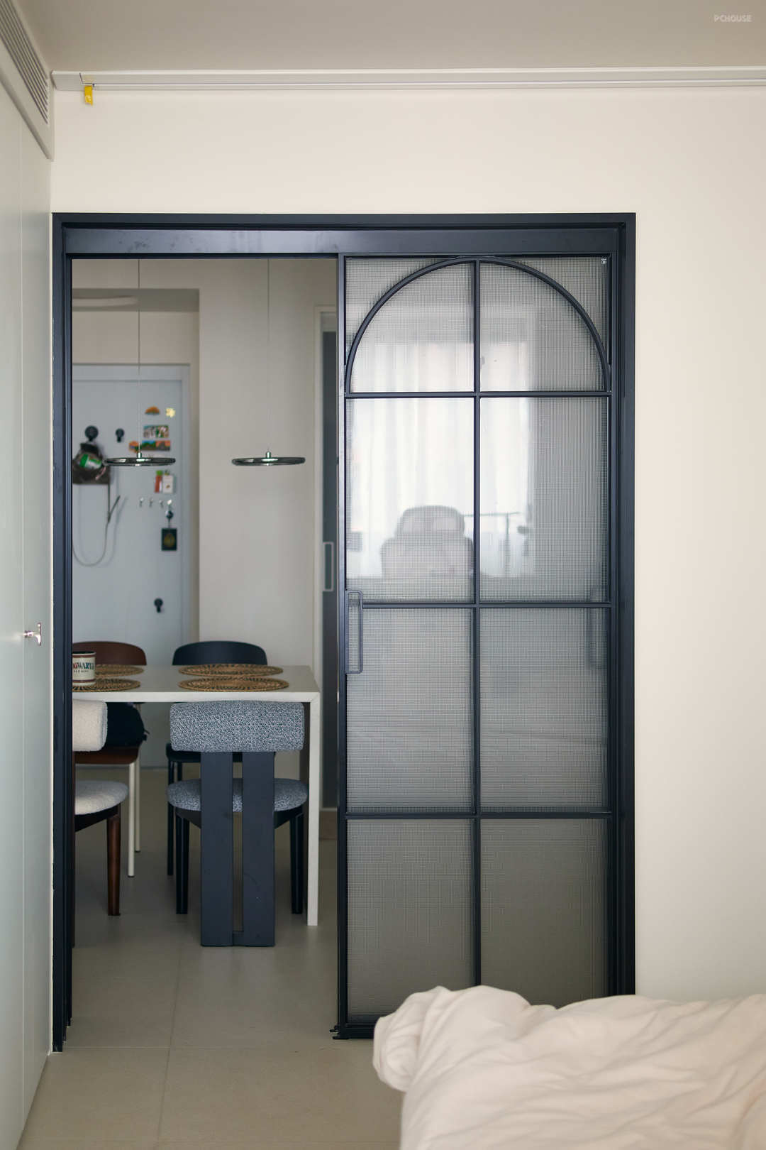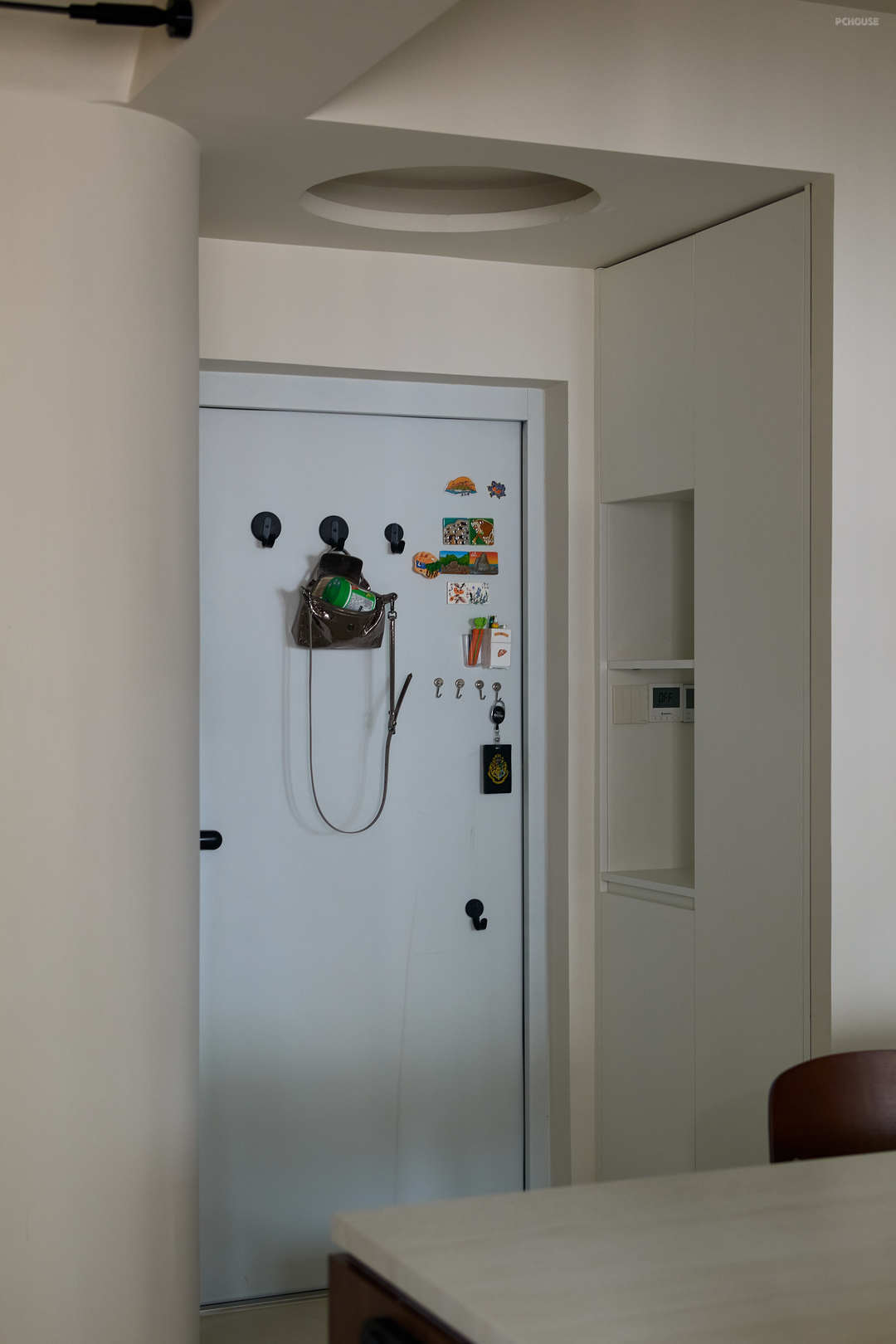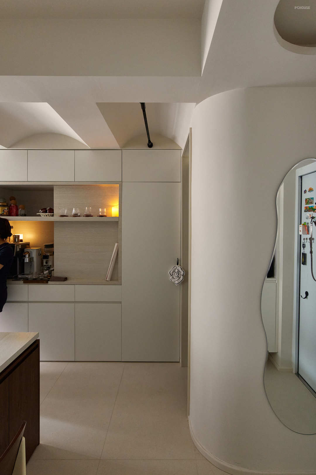 圆弧倒角的墙面处理,让进门视野更开阔,减少空间压迫感。