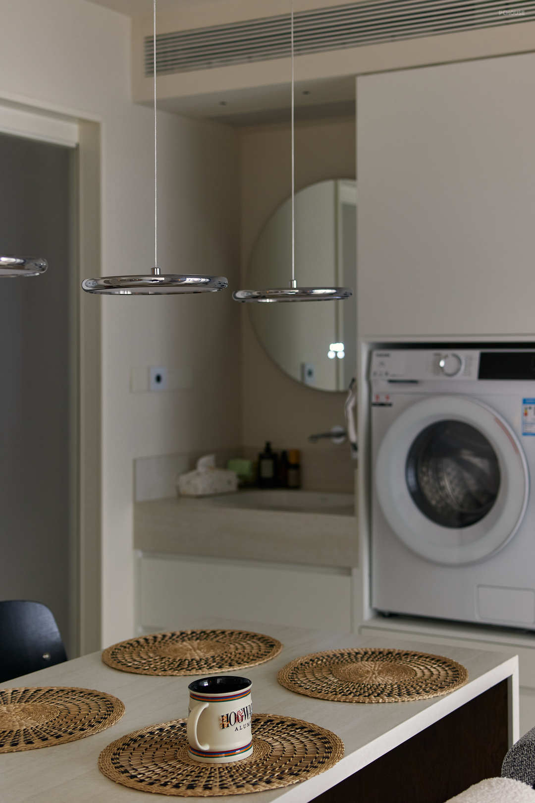 动线设计是提升生活效率的关键。我将洗衣烘干区域与干区整合在一起,打造了一条高效且流畅的生活动线,让日常家务与洗漱变得更加便捷。
