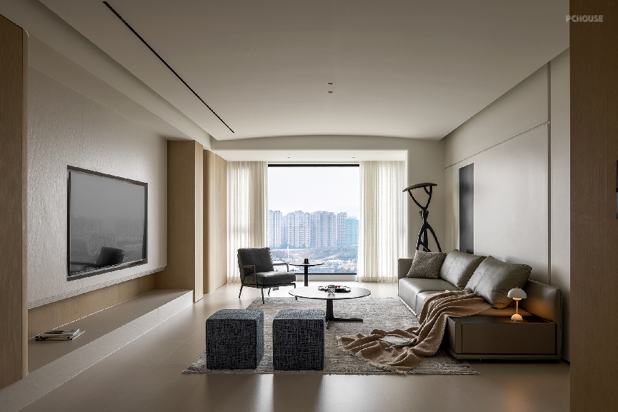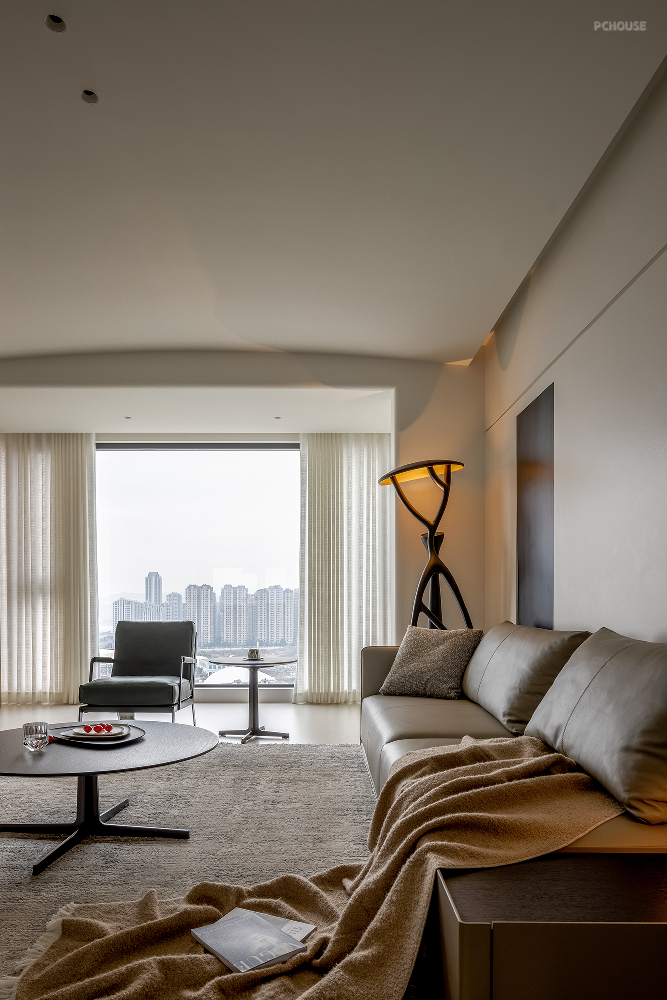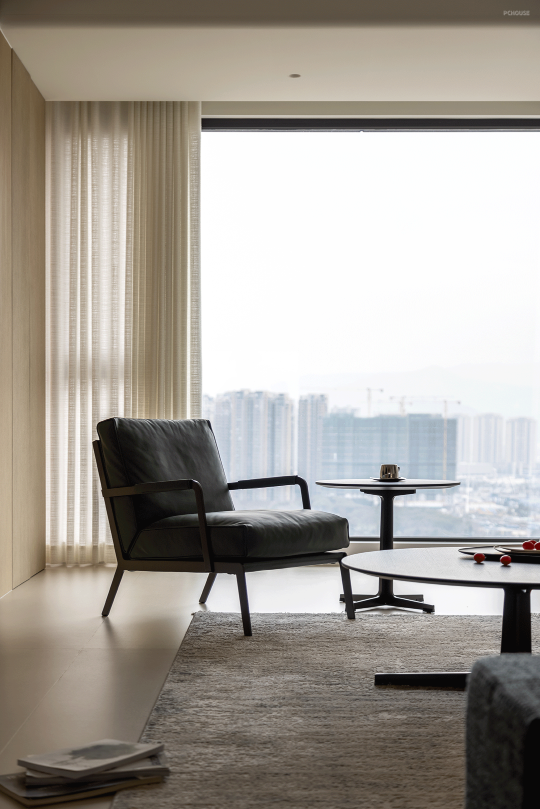 大面积落地窗将绝佳的视野与风景纳入室内,在自然光的辅助下,逐渐丰盈肌理层次,向外释放,向内生长。