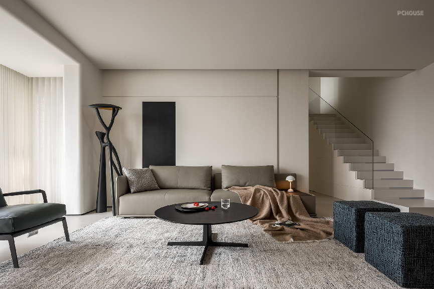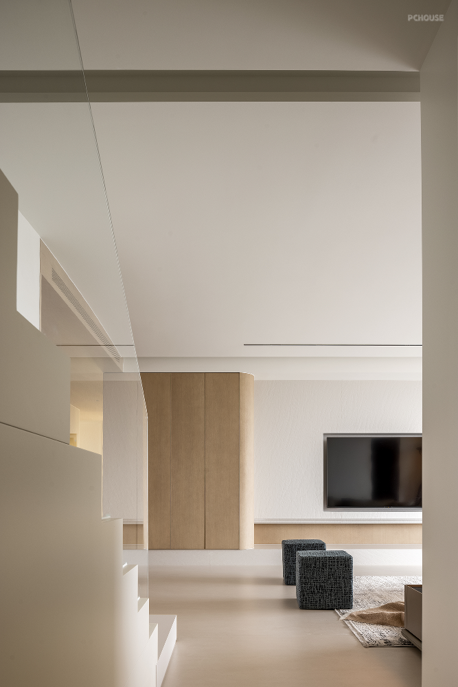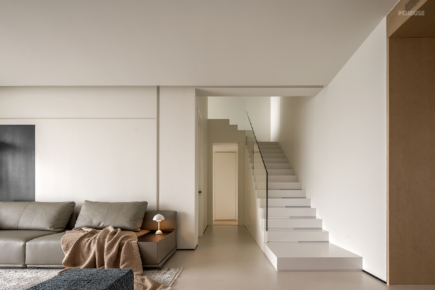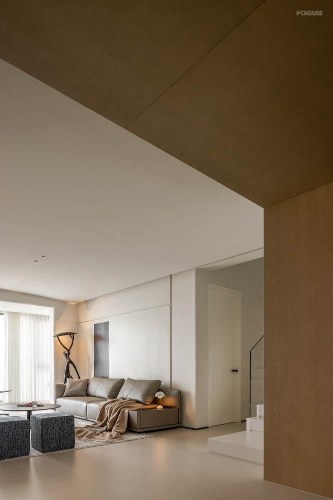 设计规划不同场景的功能需求,一层为公共区、二层为寝居区,以此平衡处理动线、收纳、情感体验的布局关系。运用光与材质之间的组合,逐层释放人与空间的感官对话,打造宁静、惬意且富有生命力的居住氛围。