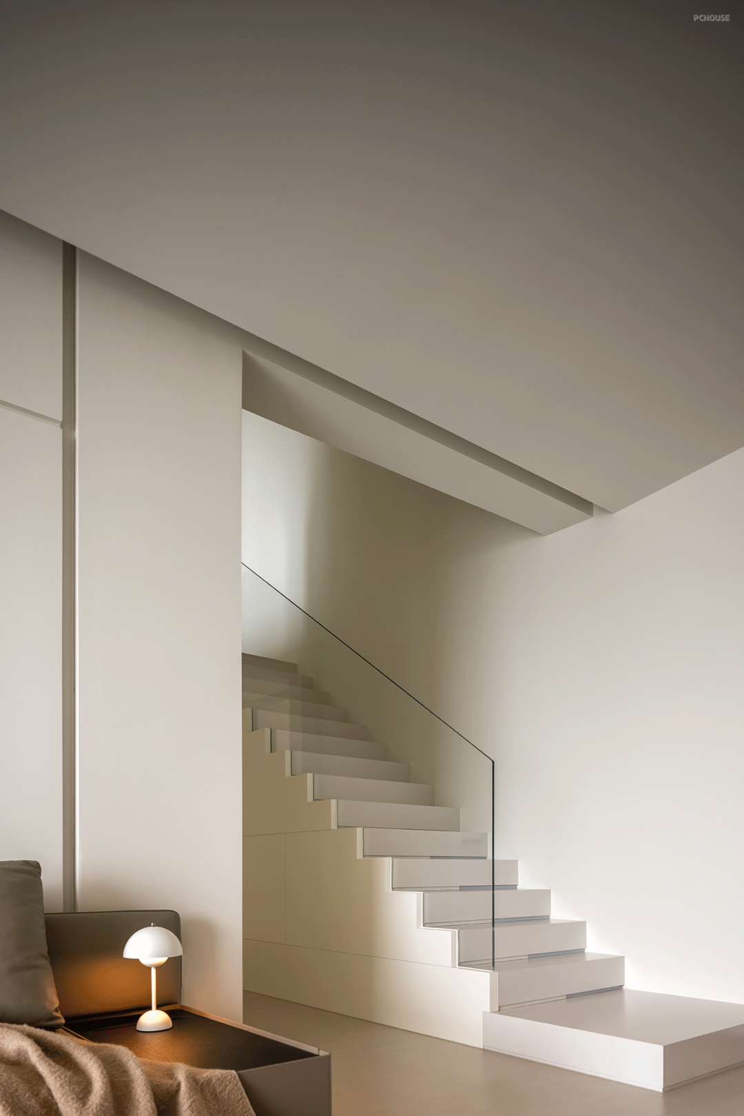 在宽敞明亮的纯净氛围中,巧妙勾勒一束暖光,占据空间焦点。这场质感层次的碰撞,衍生出不同时空下界面结构之间的互动与对话,打开光影艺术新切面。