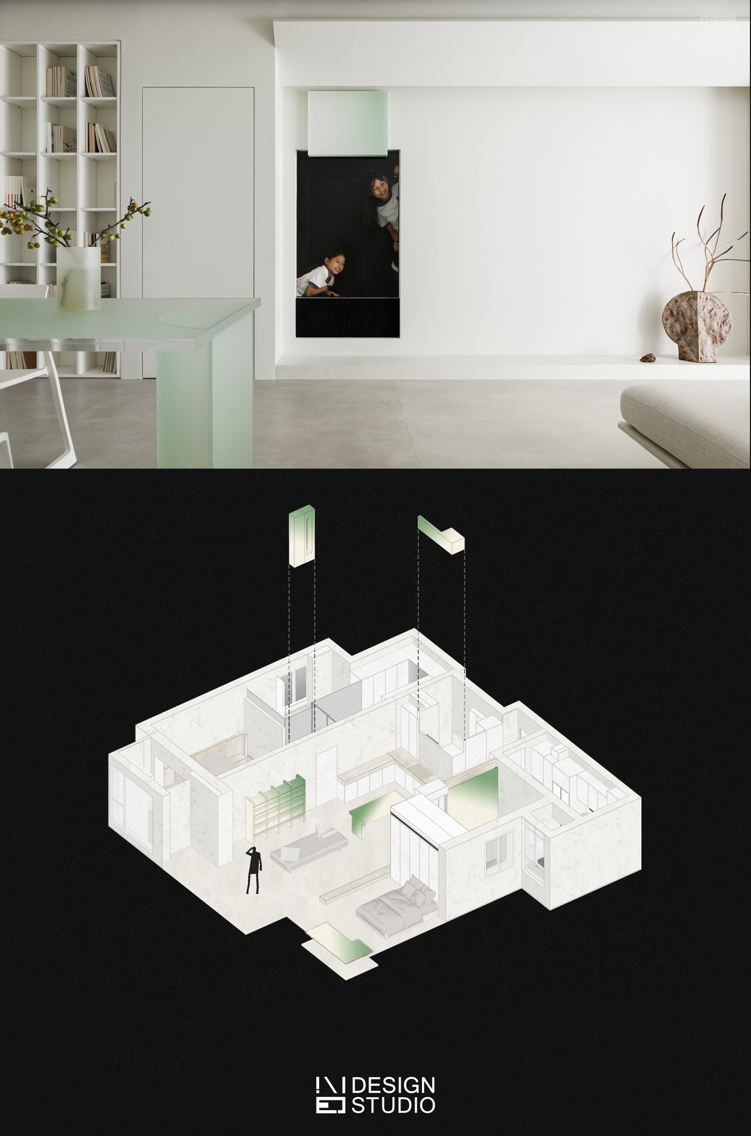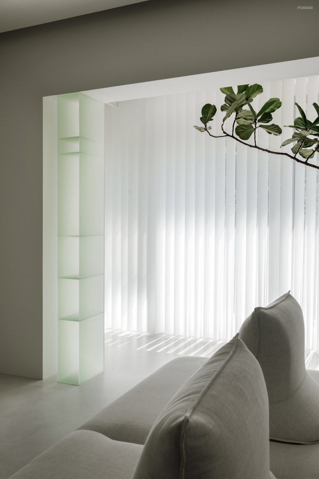 -滤景树脂板,打造自然的容器 屋主憧憬营造轻松的居家氛围,让"自然"成为家的主轴。我们将实心树脂板作为自然的容器,纵横交错般的嵌入绿意,如同身陷大自然一般,同时感受到空间带来的宁静。