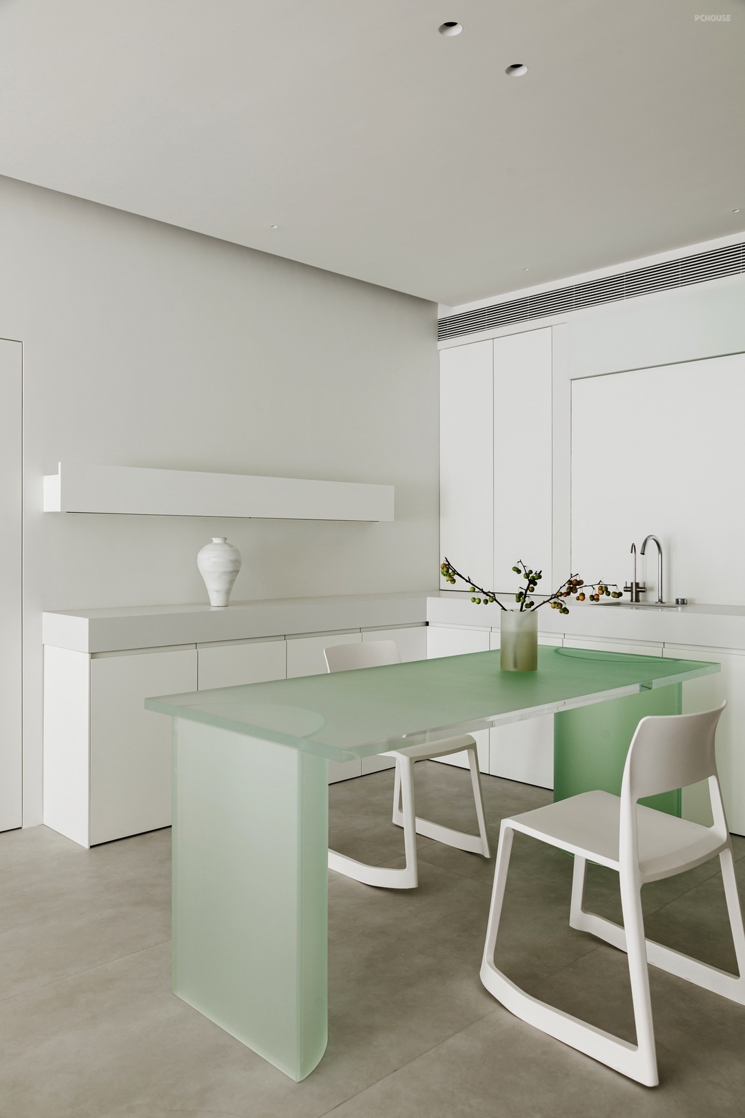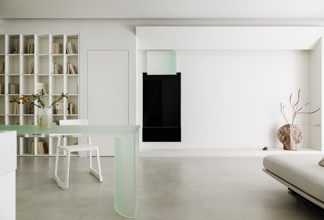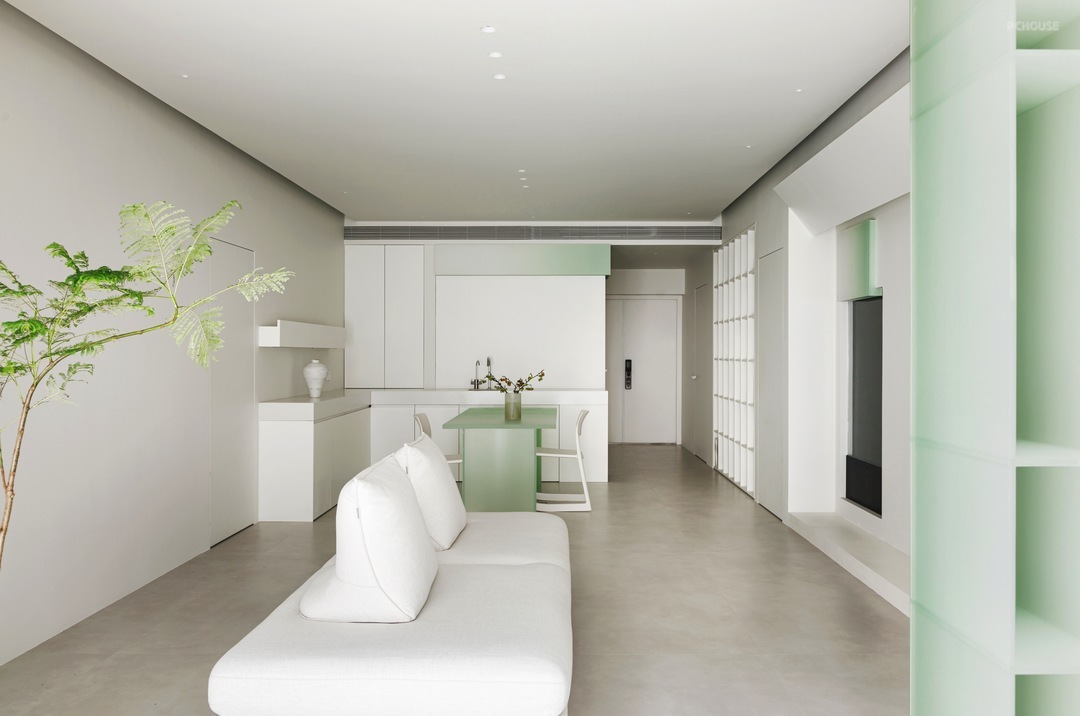 -白净简洁,隐藏多余线条 致力于减少磁砖接缝与隐藏多余线条,客厅、厨房与浴室皆采用用无接缝地砖,不仅能促成简洁画面,清洁保养上也更加方便省力。