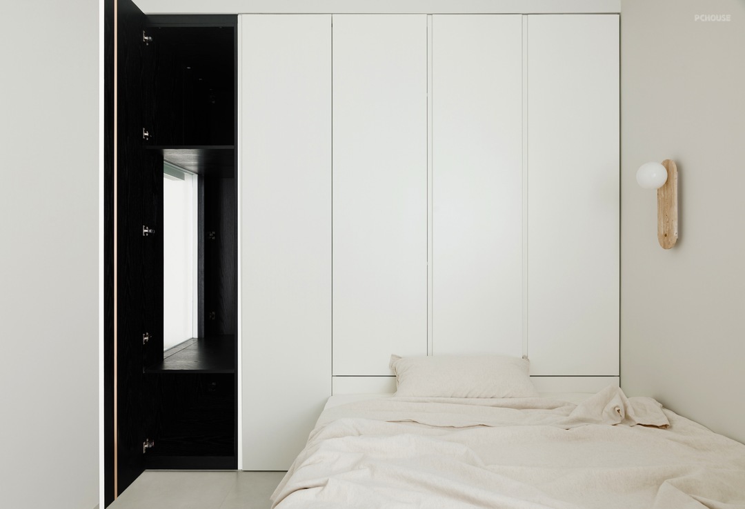 -通用设计,物有所归 与屋主衡量使用需求后,将原次卧空间改造为衣帽间,同时使内部衣柜加长,也为相邻的卫浴新增外部储物空间。