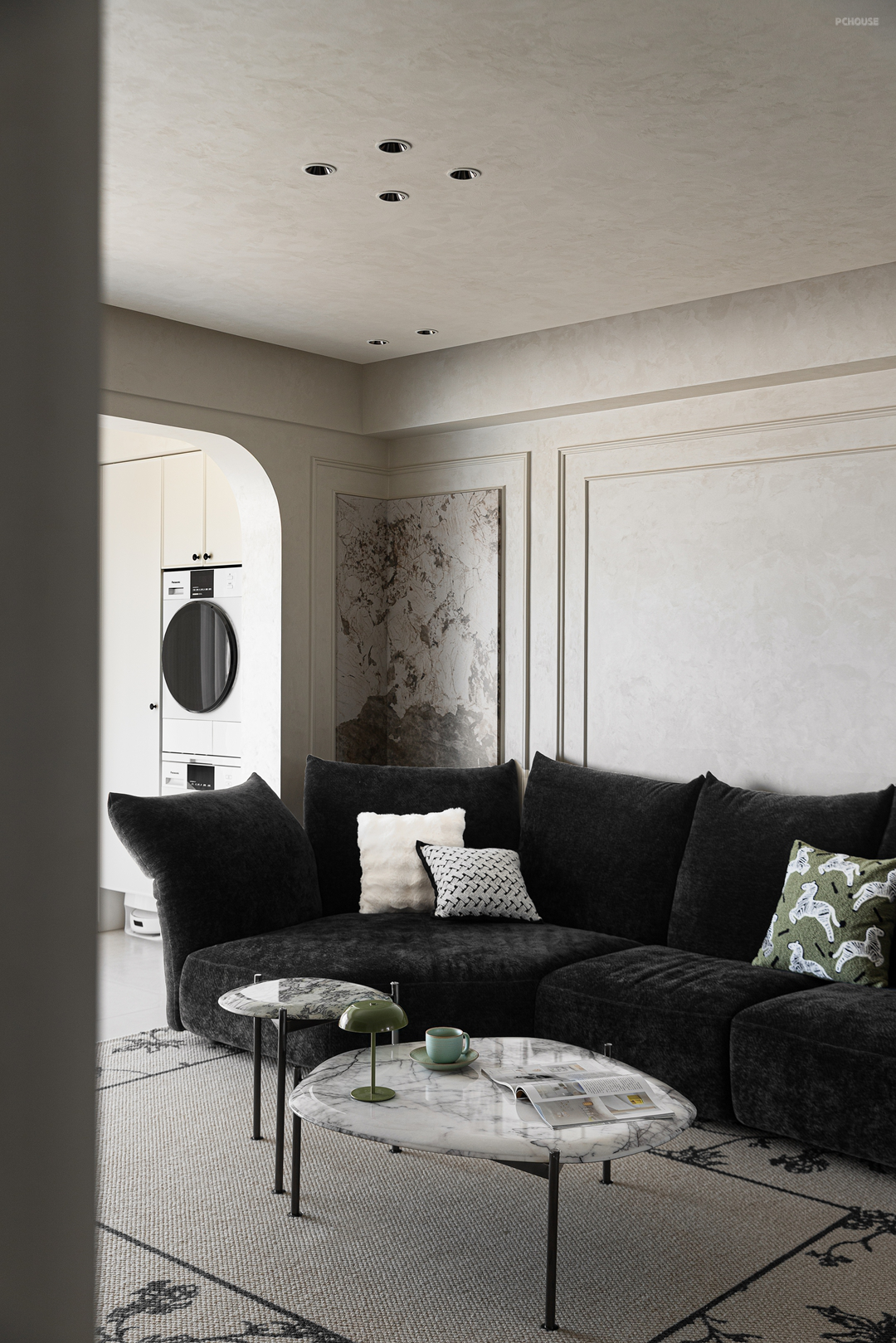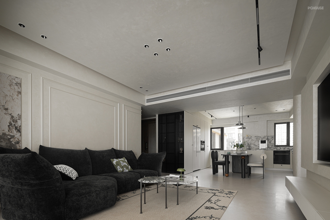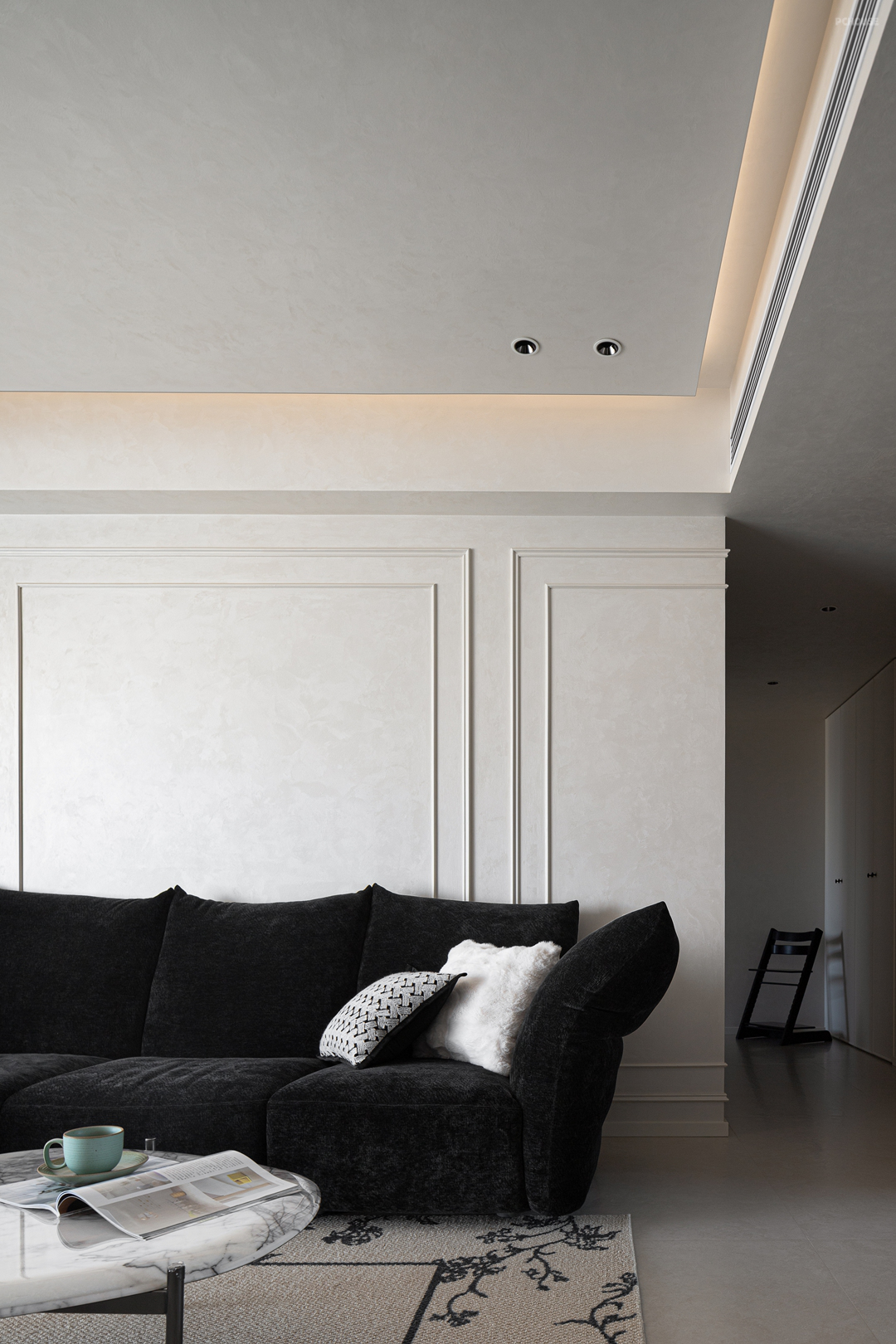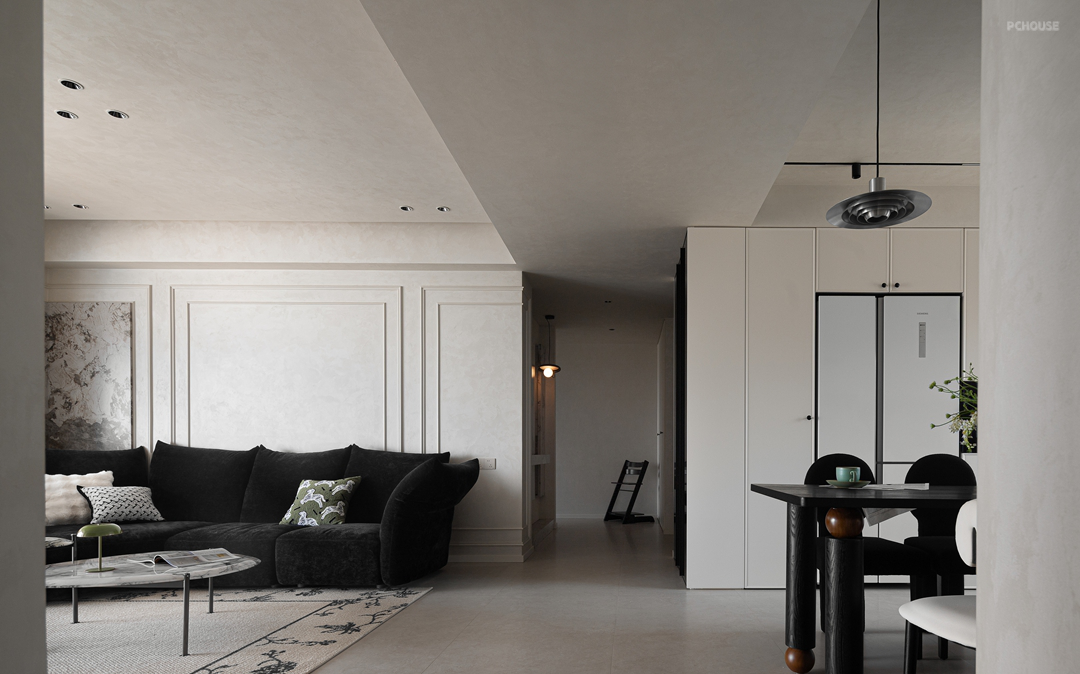 素净的墙面以利落的石膏线勾勒出立体轮廓,宛如精心描绘的艺术边框,让空间瞬间拥有了法式建筑的经典基因。