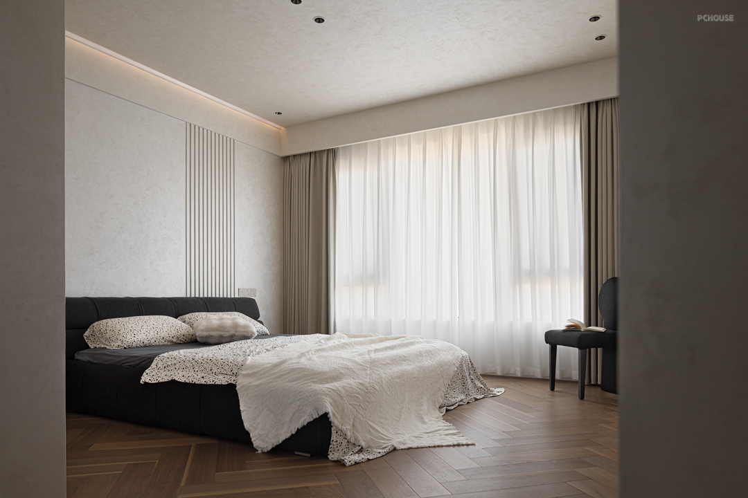 卧室摒弃繁杂,仅留素色床铺与净白墙面。极简的空间语言里,没有多余装饰喧宾夺主,每一寸留白都成为疲惫的归处,为休憩构筑纯粹安宁的港湾。