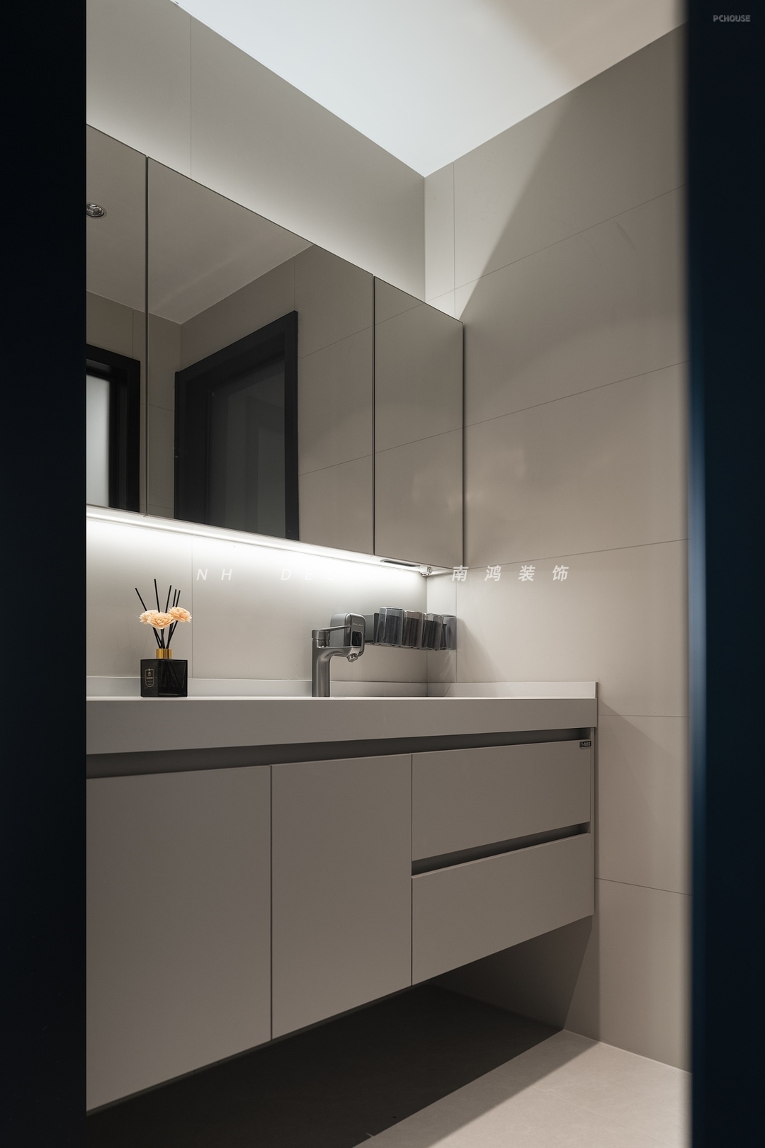 公卫的日常使用频次较高,因此除了借主卫的一部分来拓宽面积之外,还利用三分离的设计,独立划分不同功能,避免早晚高峰可能会出现的使用冲突,提升居家幸福感。