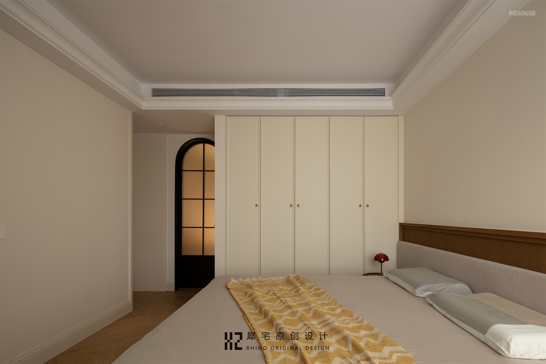 壁炉左侧的隐形门后藏了个主卧,你发现了吗?这样的设计让整个客厅更显整洁有序。