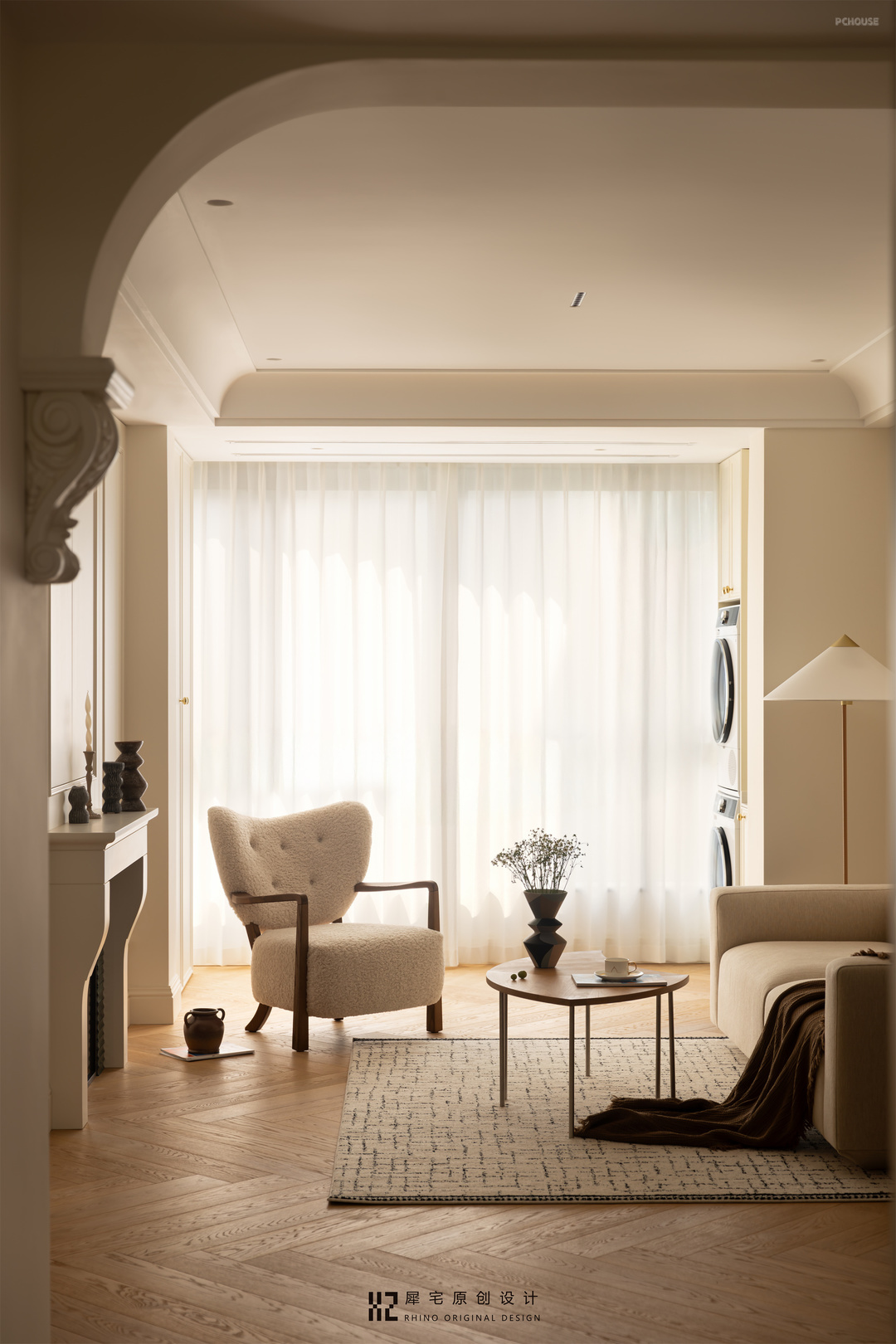 这是一套三口之家的住宅设计,设计师根据屋主的喜好,选择了当下流行的法式中古风。