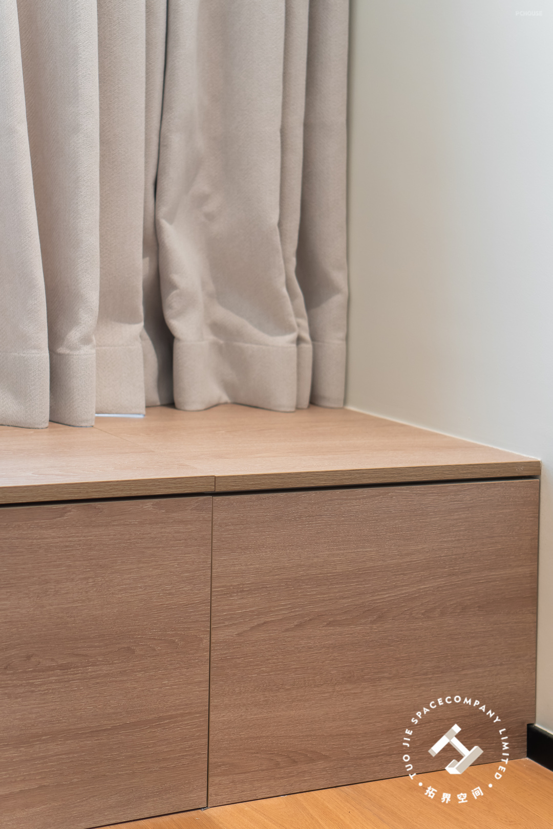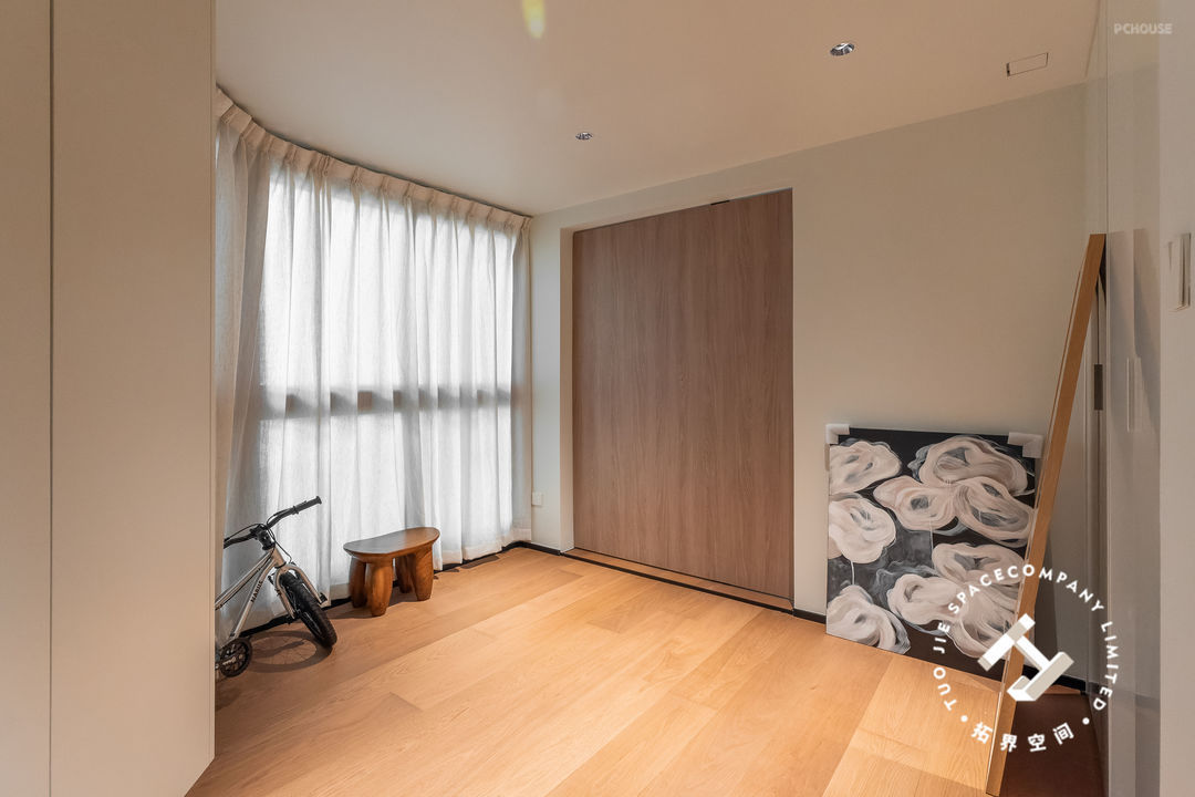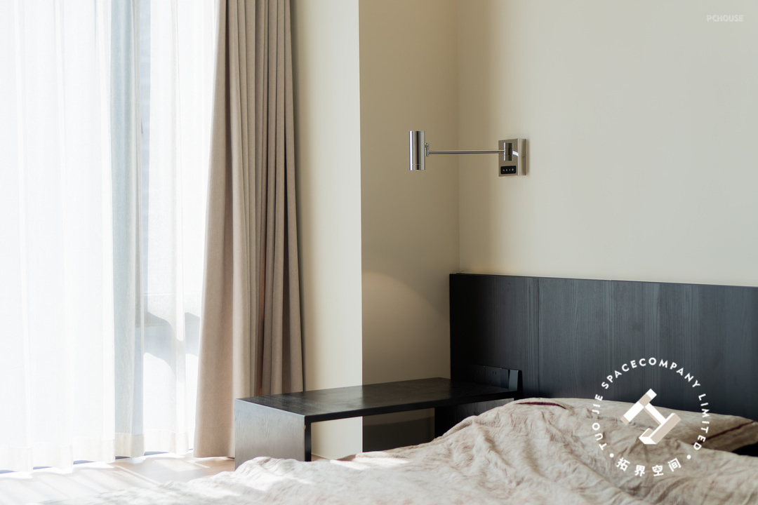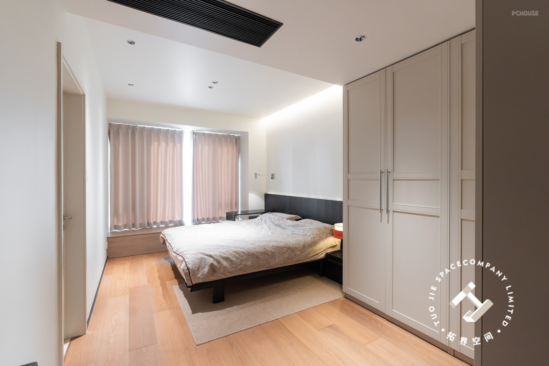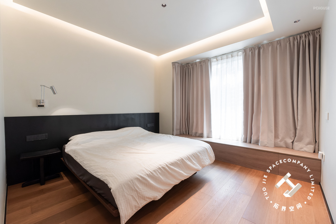 为了让卧室温暖起来,利用木饰面包裹飘窗台,打造出更实用且富有创意的空间。