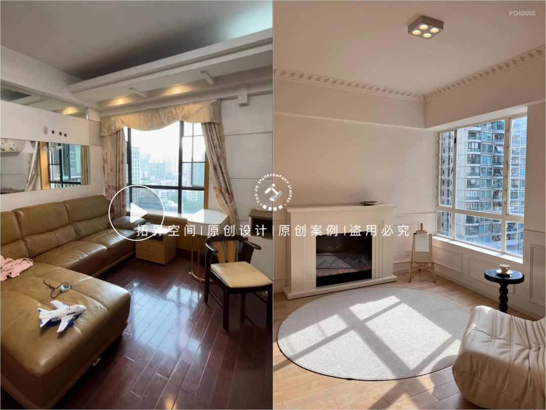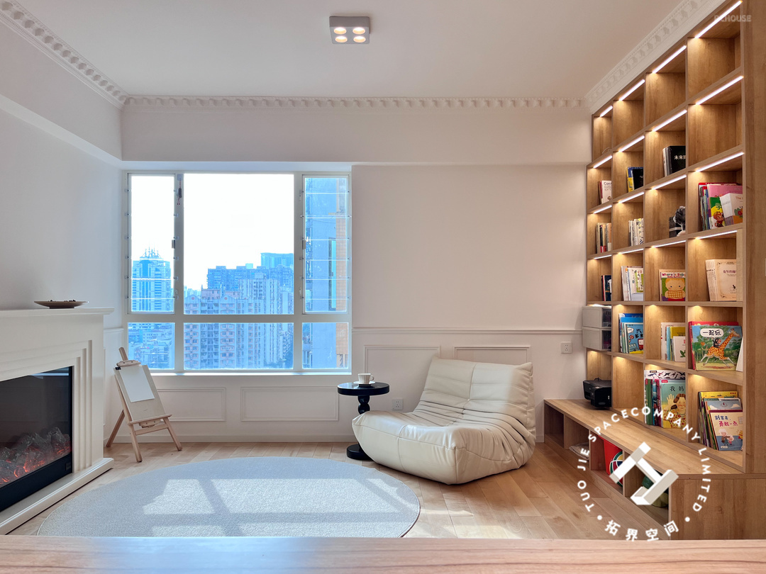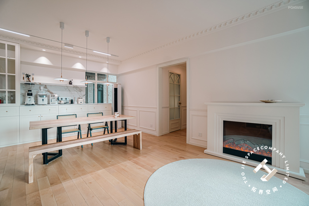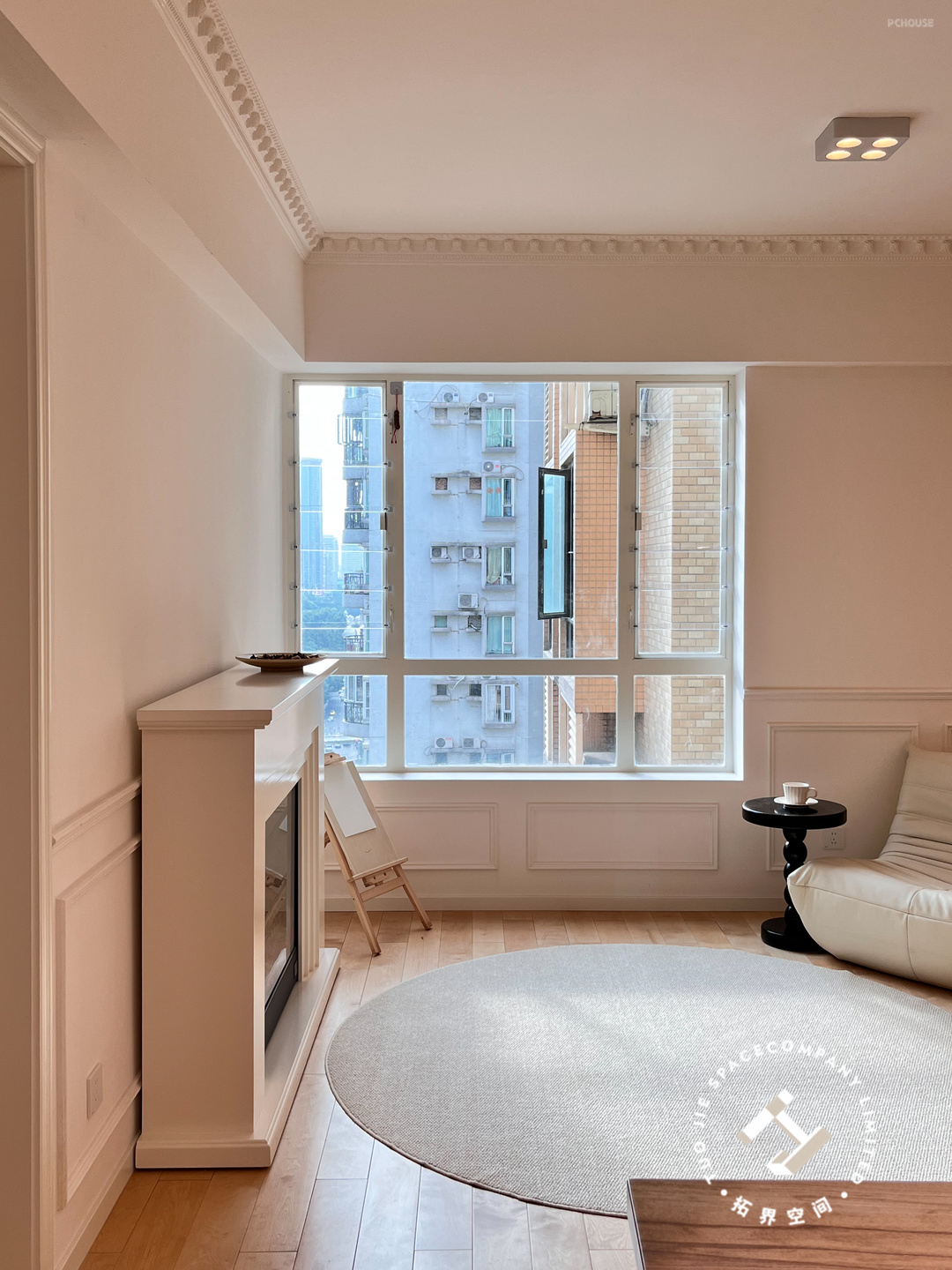 壁炉的做法为这个空间注入了温暖的法式气息,仿真火焰在里面跳动着,增加了独特的视觉效果,生活氛围变得更加诗意。