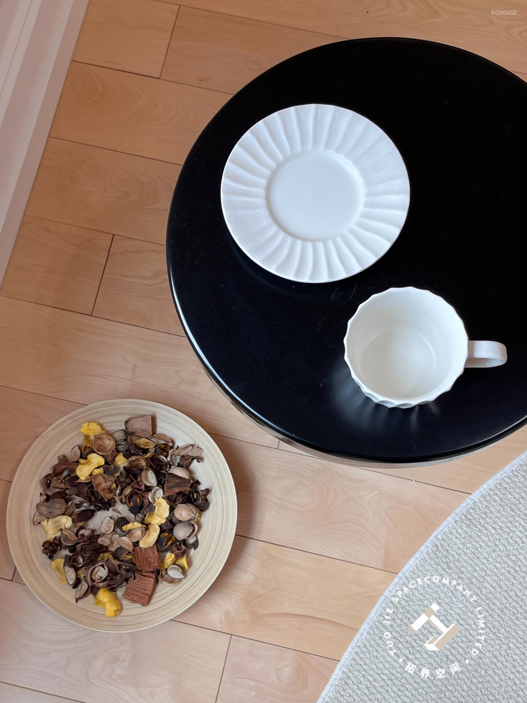 摆放毛毛虫沙发,搭配地毯和黑色小边几,就是个休闲惬意的角落,阳光照入,治愈了一整天的心情。