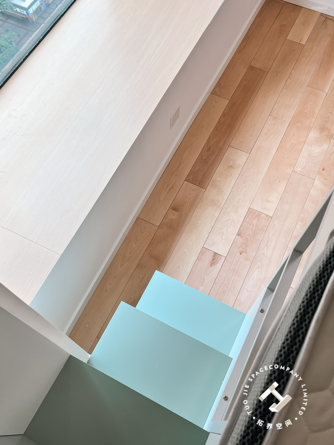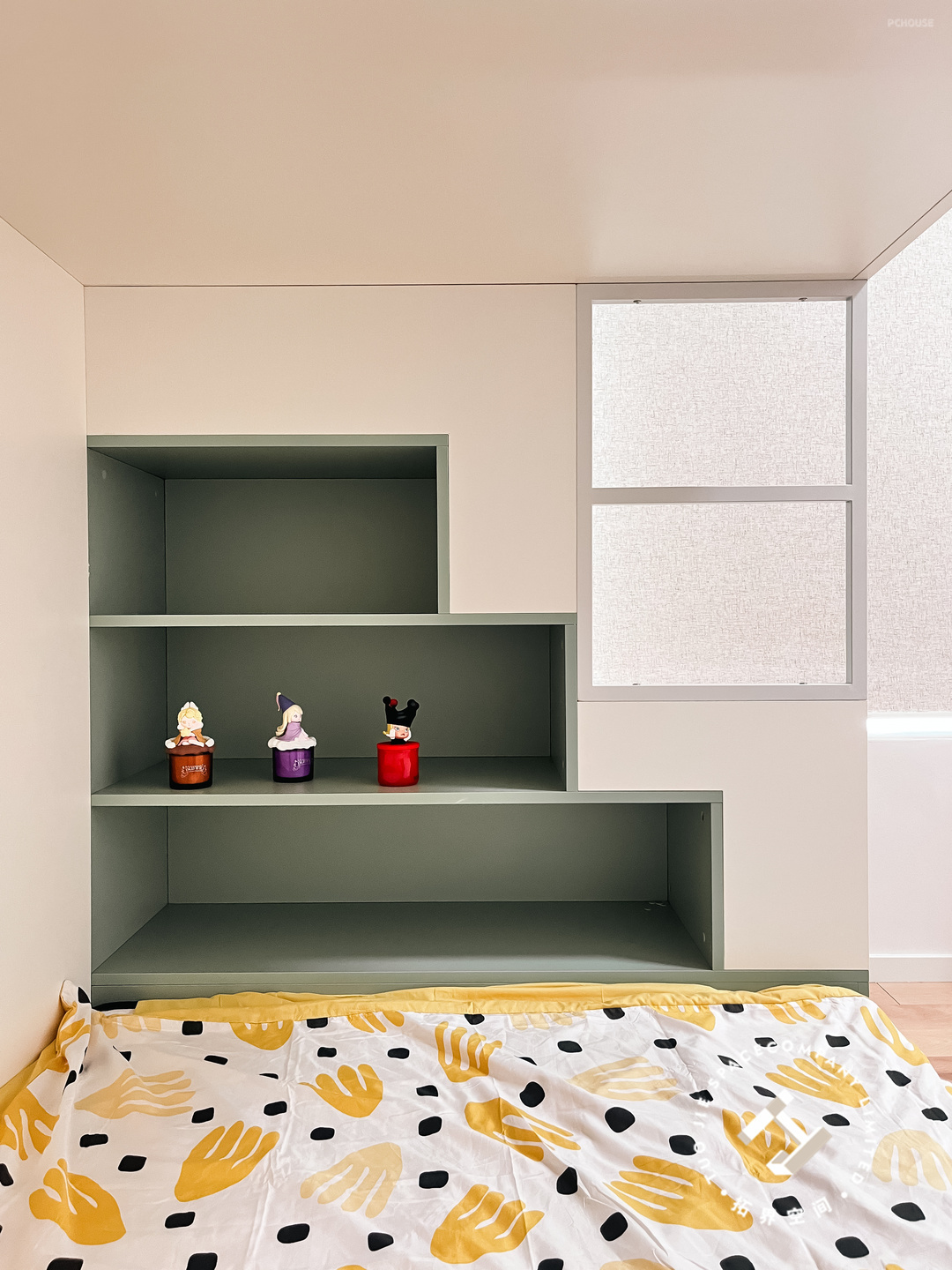 下层做地台床,有着舒适的活动空间,床尾与踏步连接,有挖空踏步做了收纳区的,也有互动的围栏,既实用又充满了乐趣。