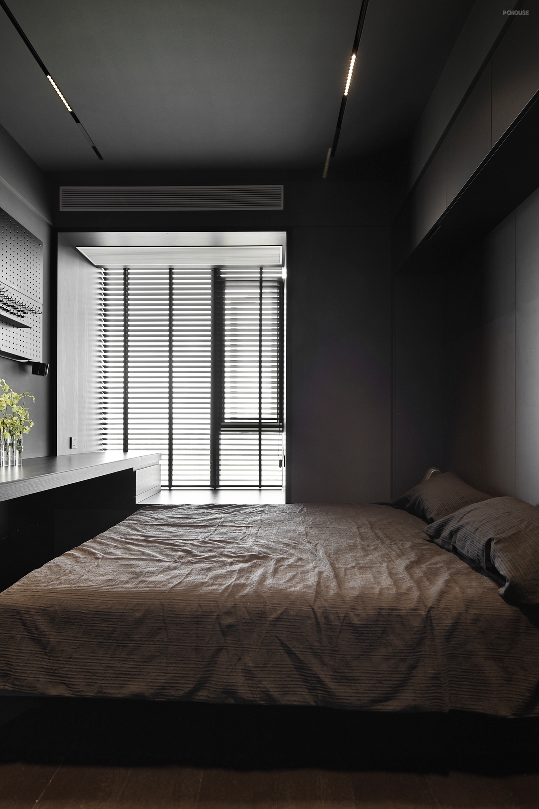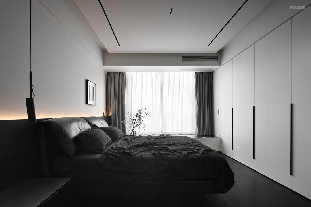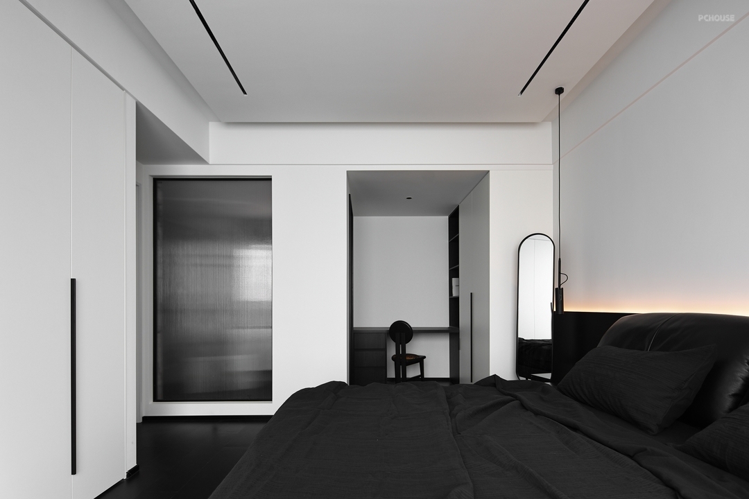 因为压缩了部分电竞室的空间,使得主卧室床尾有余地增加一组衣柜,让收纳功能得以提升。
