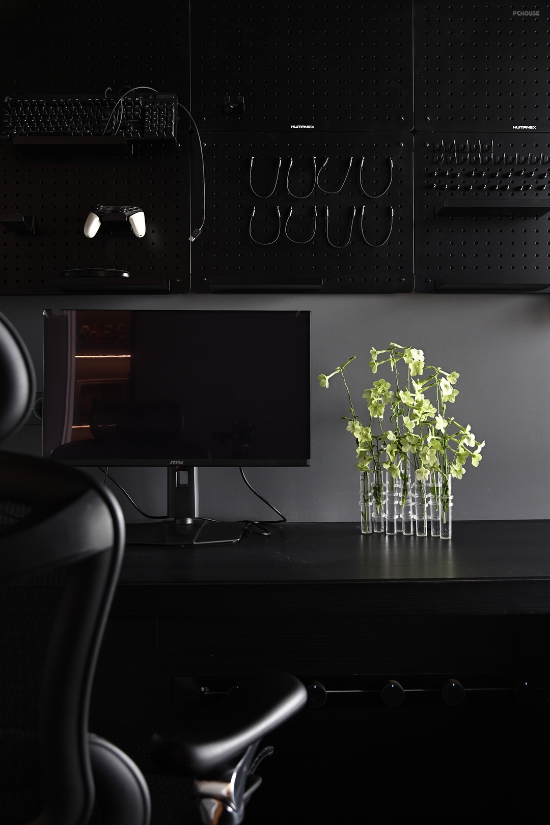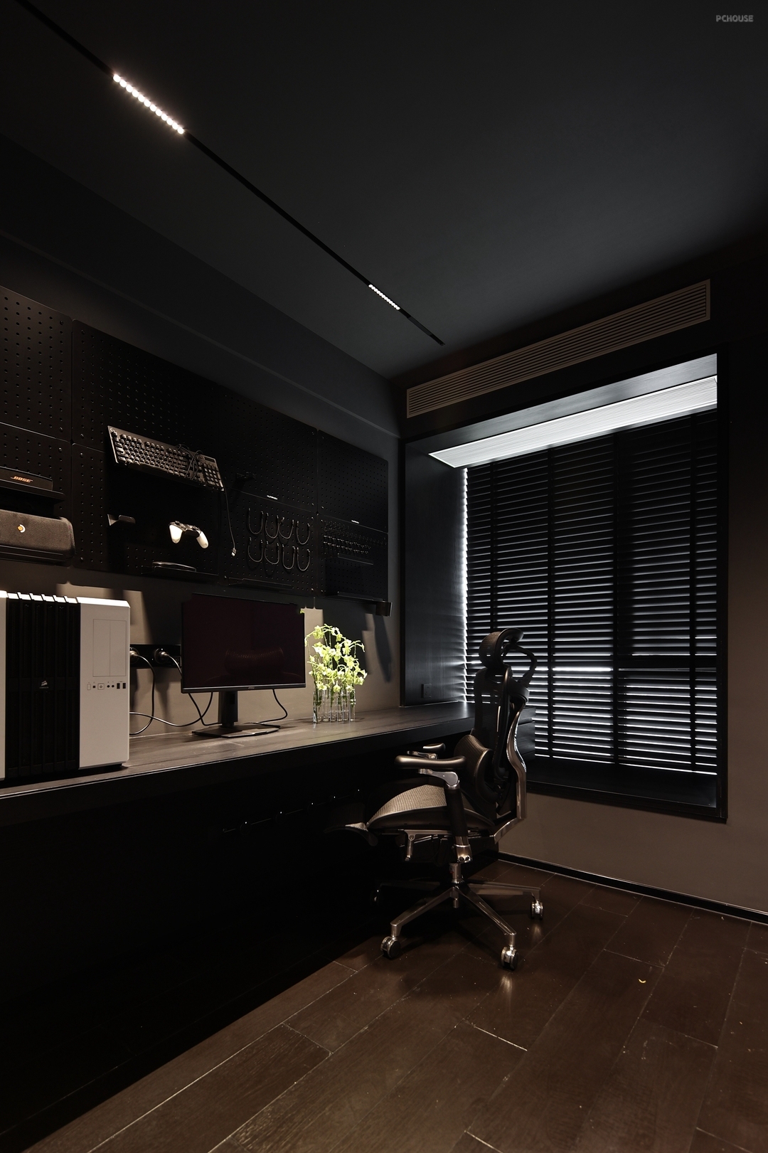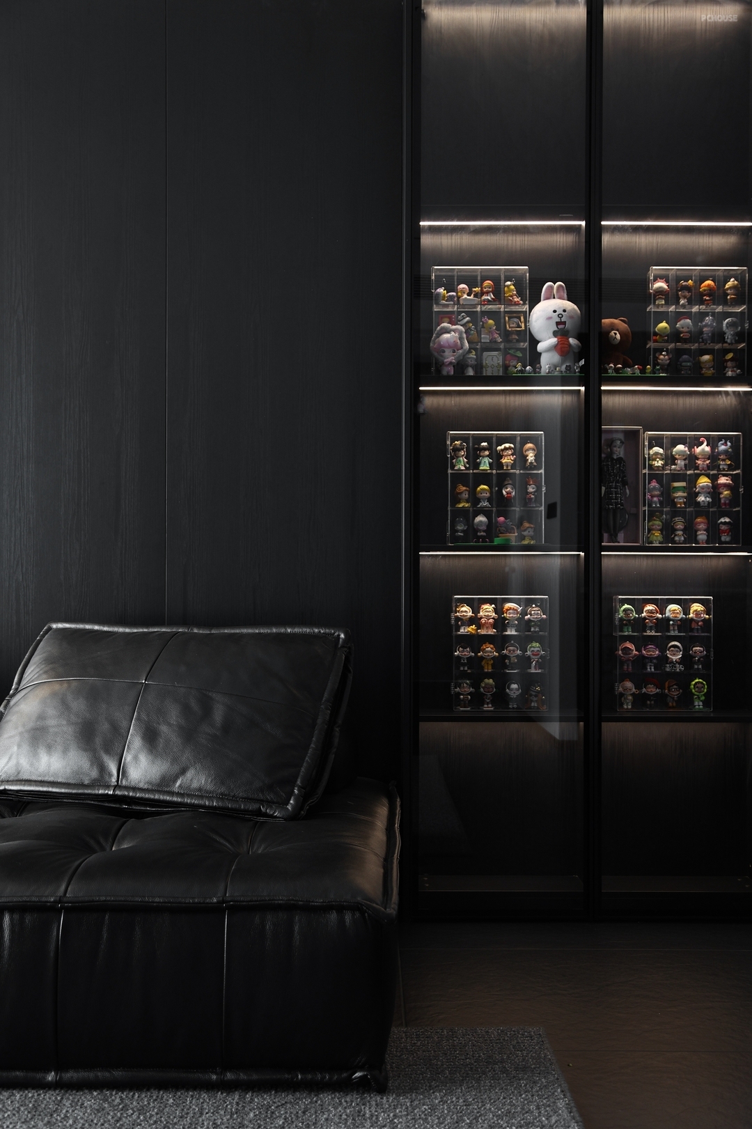 因为压缩了部分电竞室的空间,使得主卧室床尾有余地增加一组衣柜,让收纳功能得以提升。