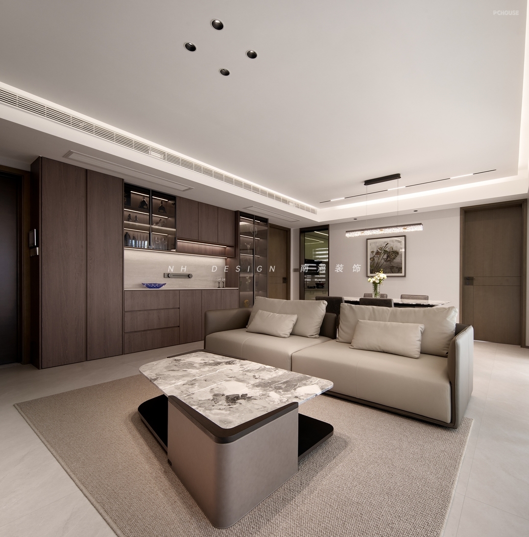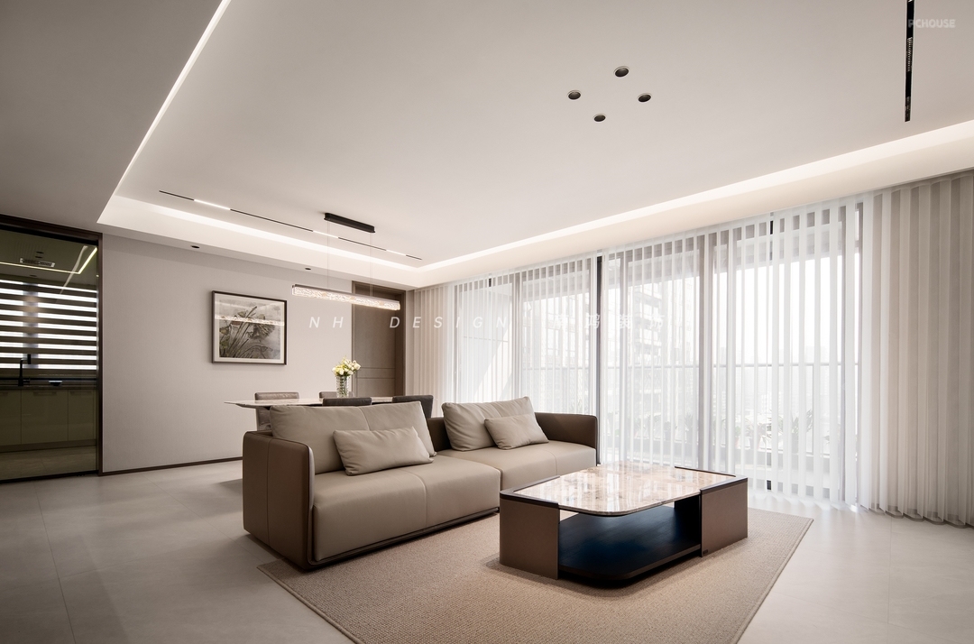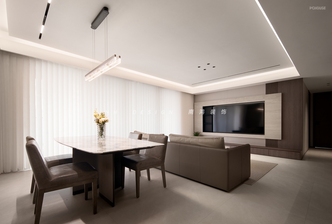 入户即见宽敞大气的公共区,一体式客餐厅纵贯南北动线,释放自由感与松弛感。
