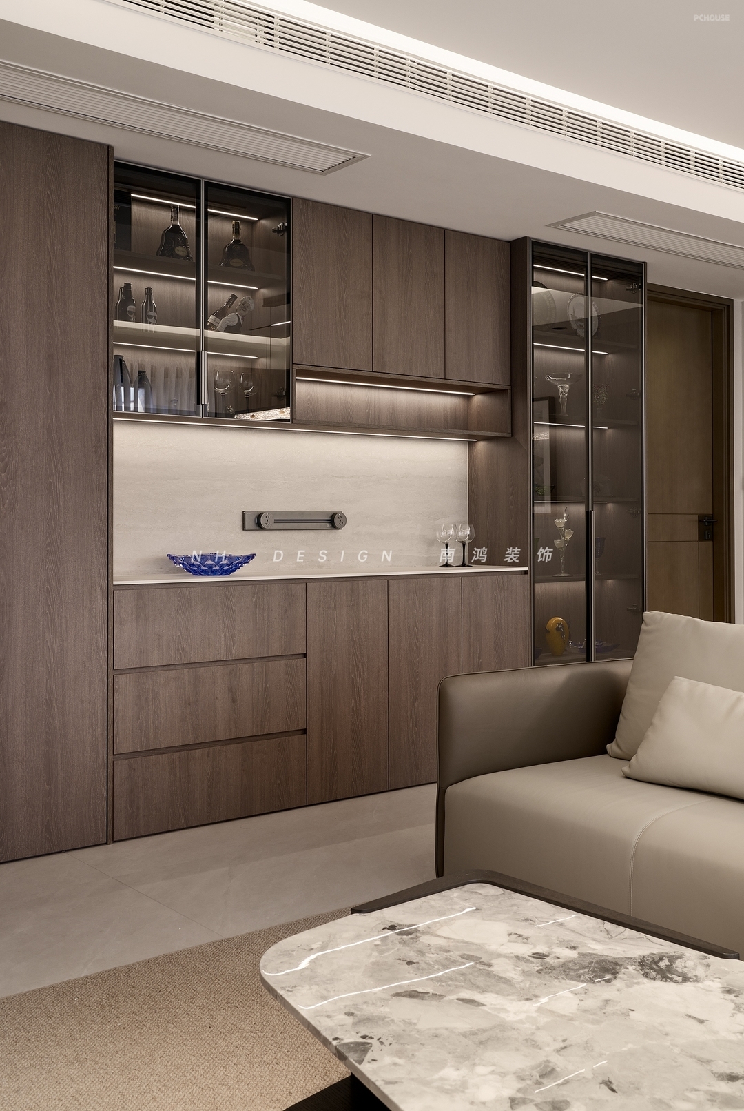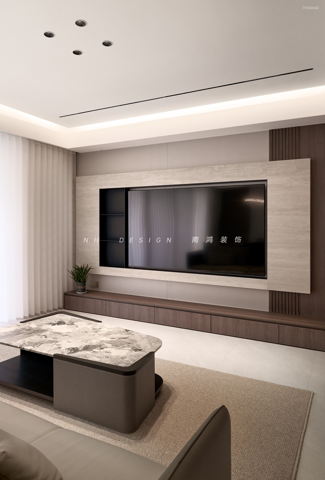 客厅电视背景墙利用悬浮、内嵌、组合式设计,低调中彰显典雅气质。