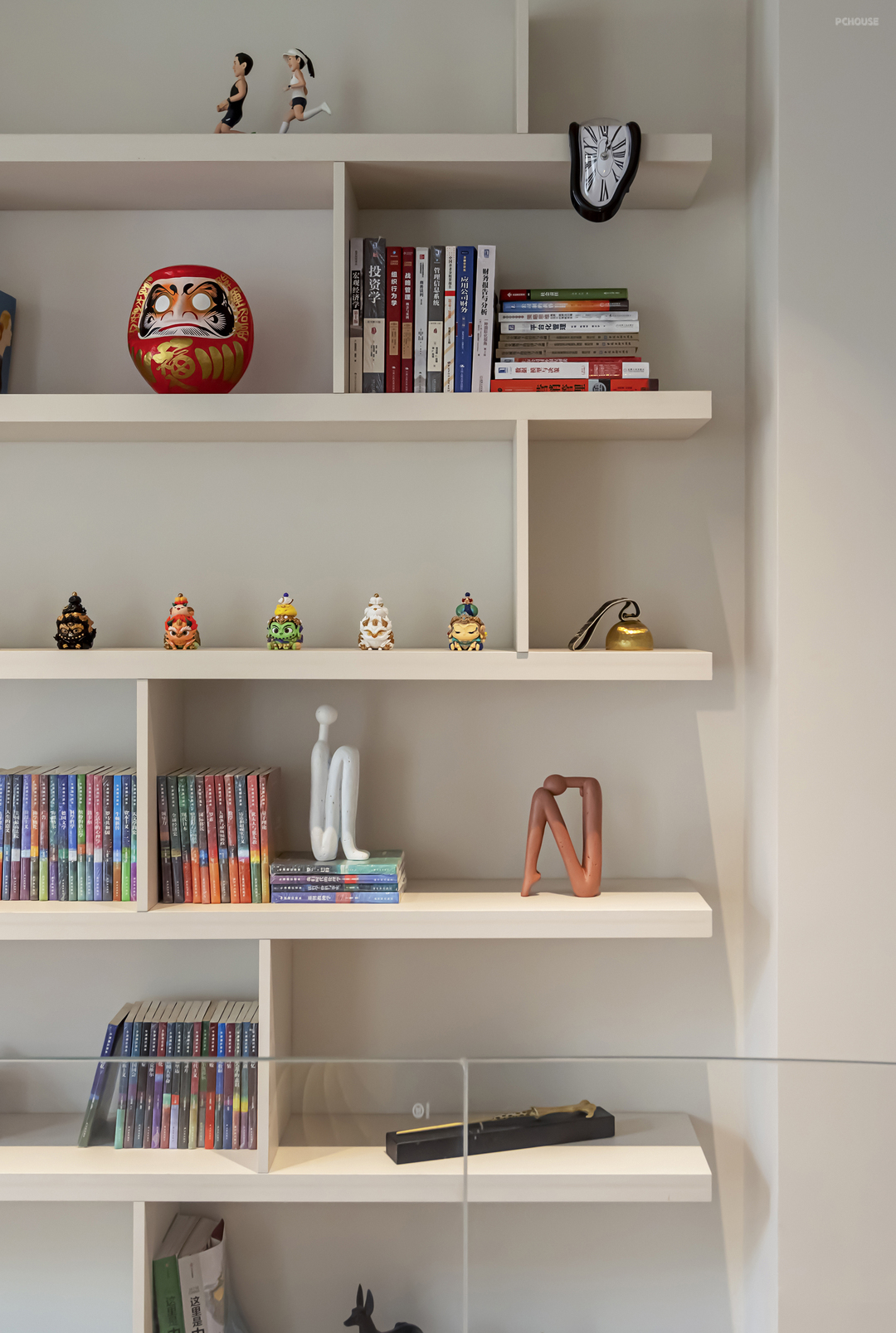 混色书籍搭配不同风格的个性摆件,碰撞超绝氛围感,让书柜变身艺术展览馆。