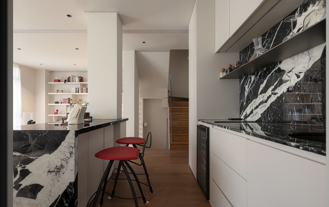 奢石的绮丽与吧台优雅紧密结合,留出独酌与社交的空间。