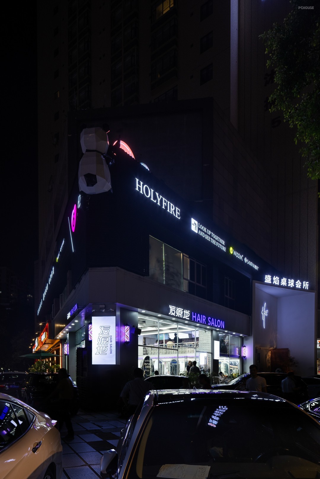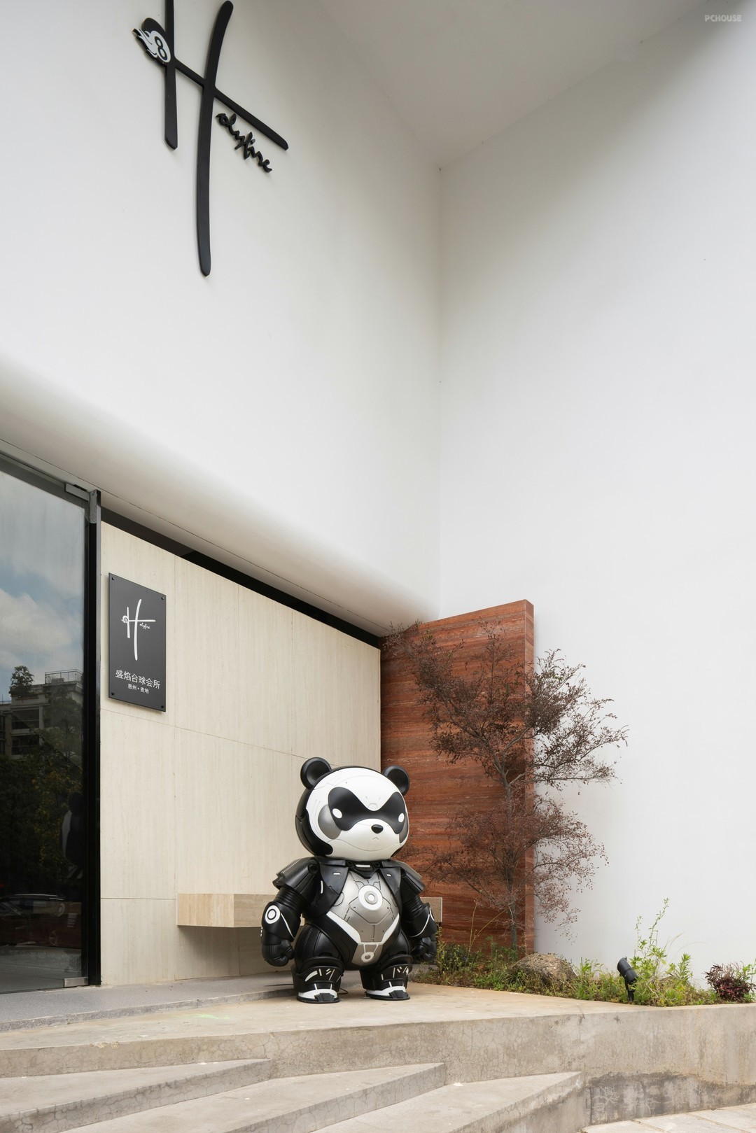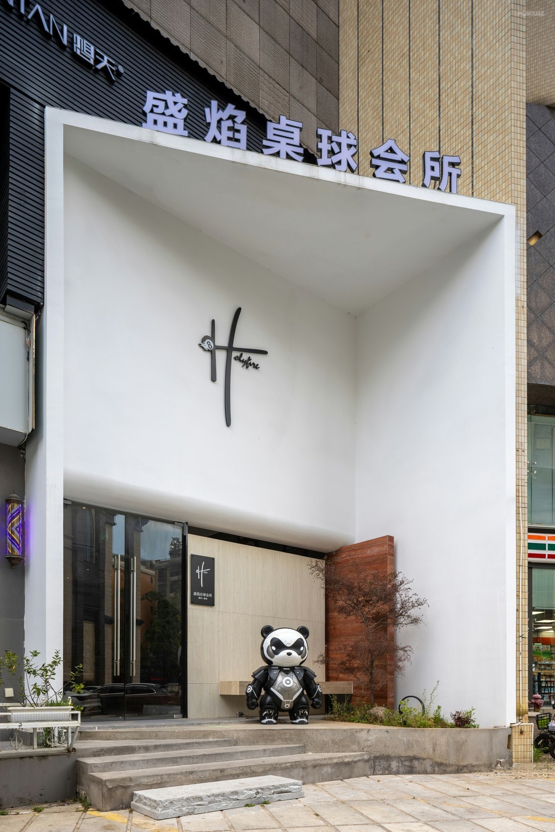 商业空间,制造吸引力是关键。依托建筑结构,结合转角优势,打造出“三棱柱”,其底面镂空,用作入口。LOGO置于“三棱柱”顶部,提高辨识度。将潮玩熊猫融入微景观,无论白天还是黑夜均能传递品牌格调。以集合店的概念入手,主打自然、绿色、生态的视觉观感,融合台球、咖啡、酒、轻食等内容。