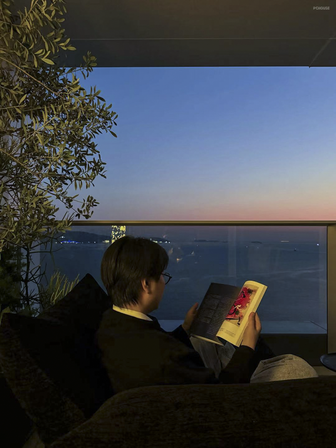 慵懒地倚靠在沙发里,醇厚的酒香悄然弥漫。耳边,海浪有节奏地拍打着海岸,与偶尔传来的鸟鸣谱写出一曲自然的交响乐。远处,海天相接处,几艘邮轮悠悠驶来,缓缓划过海面,留下一道道泛着粼粼航迹,为这幅天然的海景图平添几分诗意。就这样静静坐着,看山看海,那无垠的辽阔让人的心也随之沉淀、归于宁静。