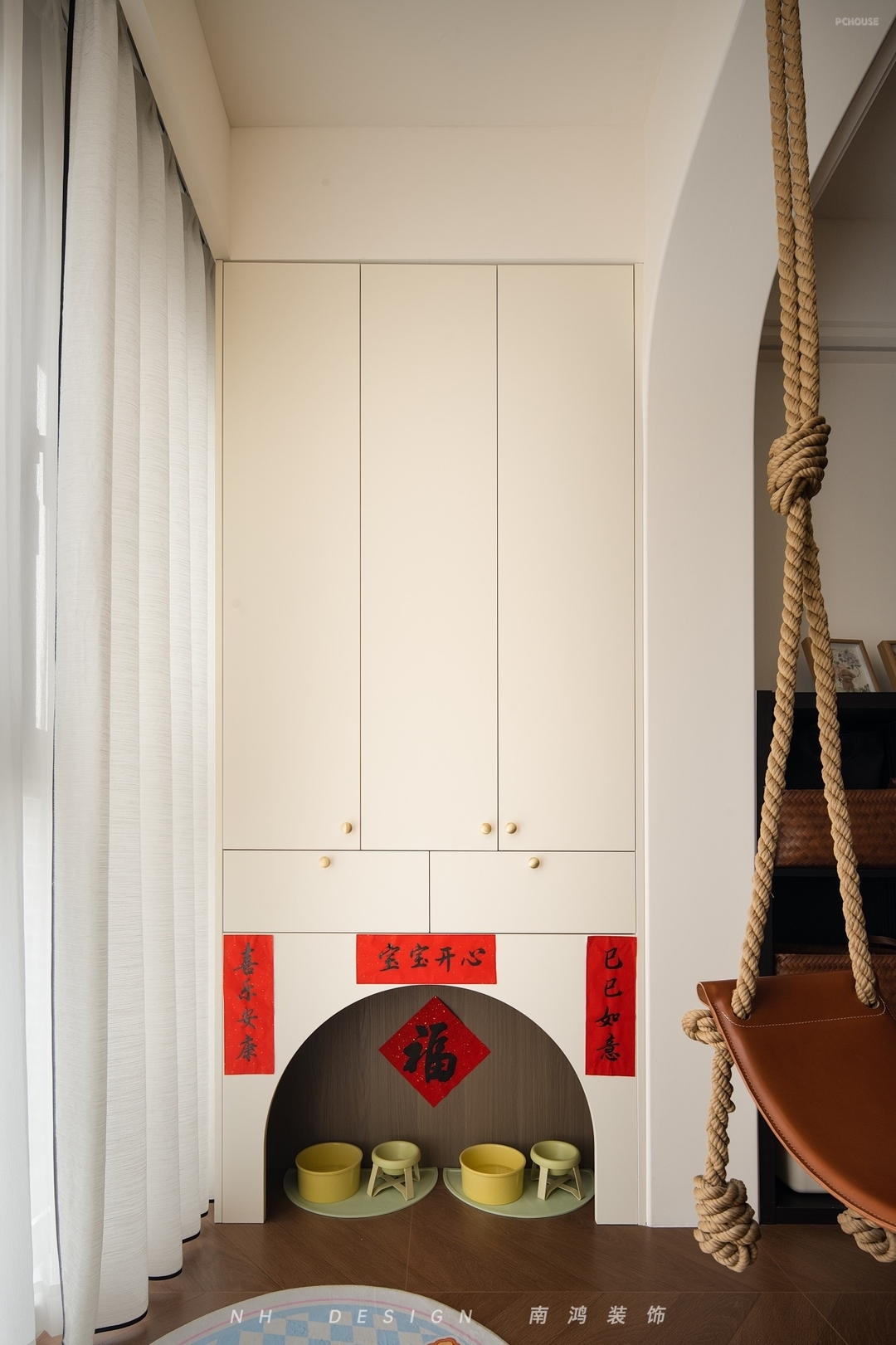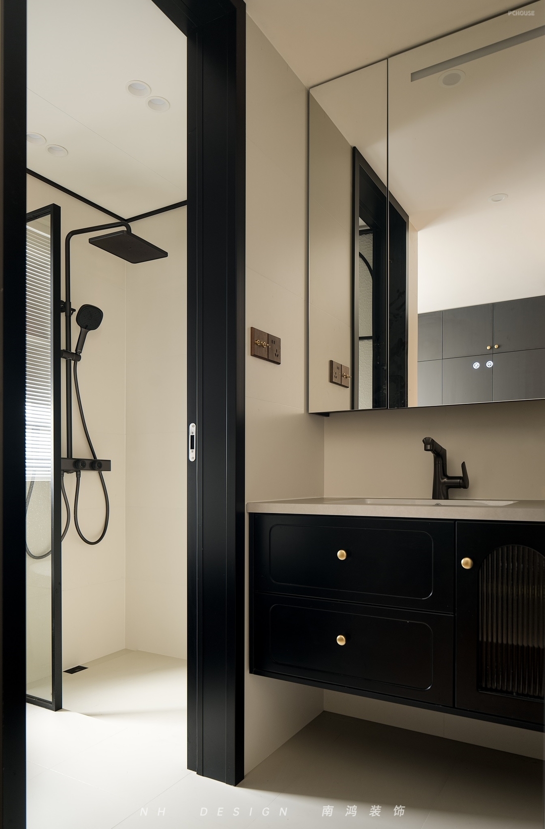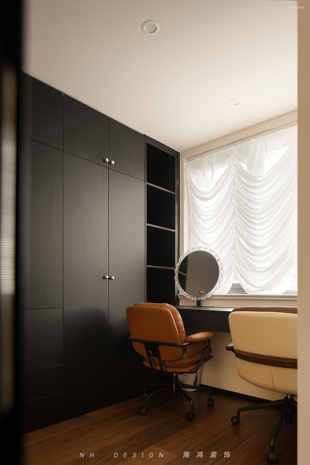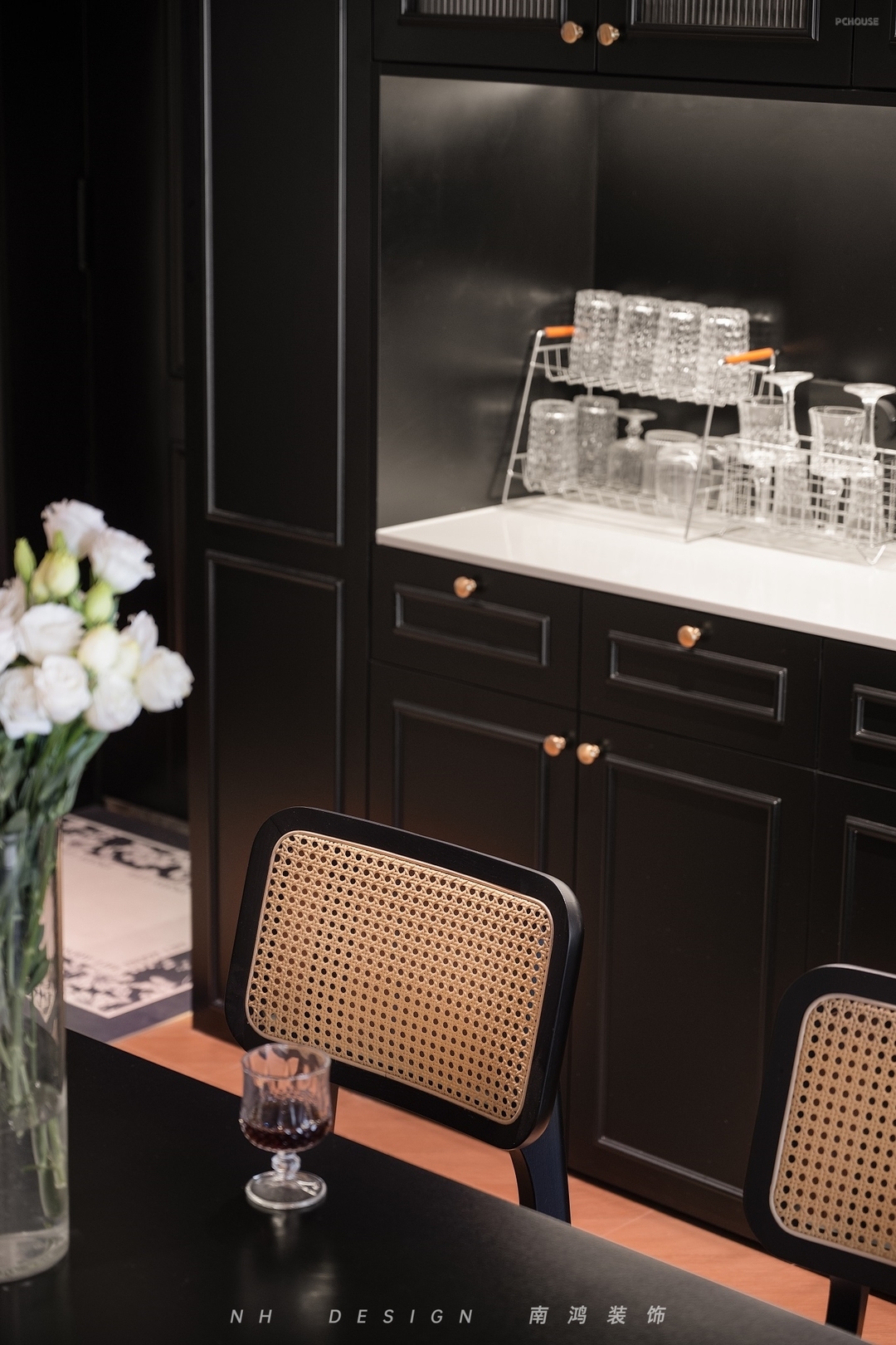 前言: 本案是一套女业主购置的预备婚房,小姐姐钟情于深邃的黑色以及复古元素,家中还有两只可爱活泼的泰迪犬。在设计需求上,她希望这所空间既能表达复古美学的高级感,又能为毛孩子留出专属生活区。