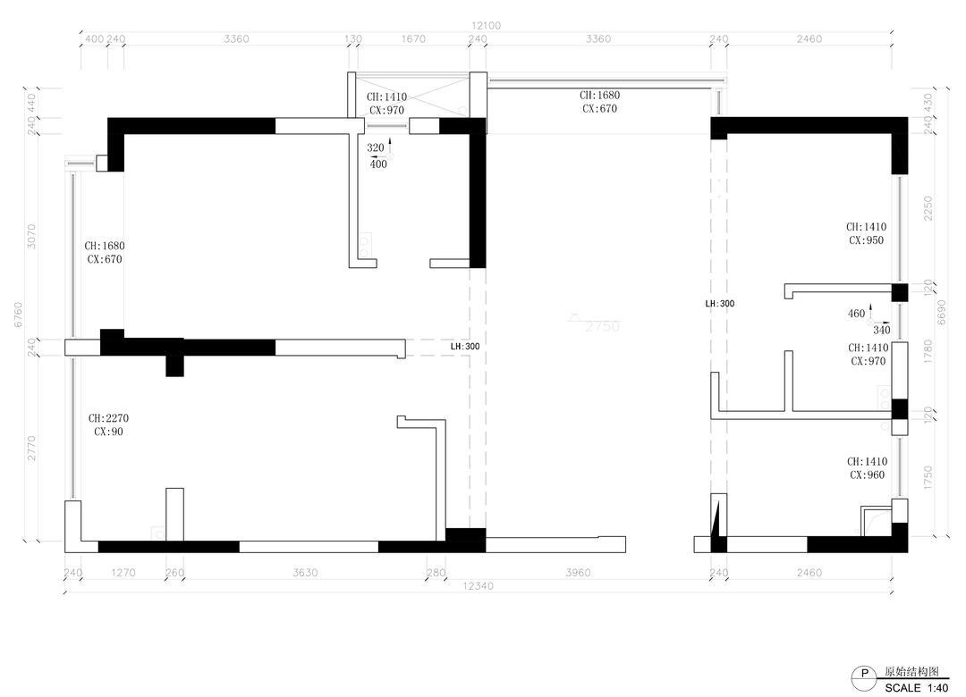 缺点:原客厅采光较差,原主卧无法做出衣帽间,次卧离公卫较远等。
