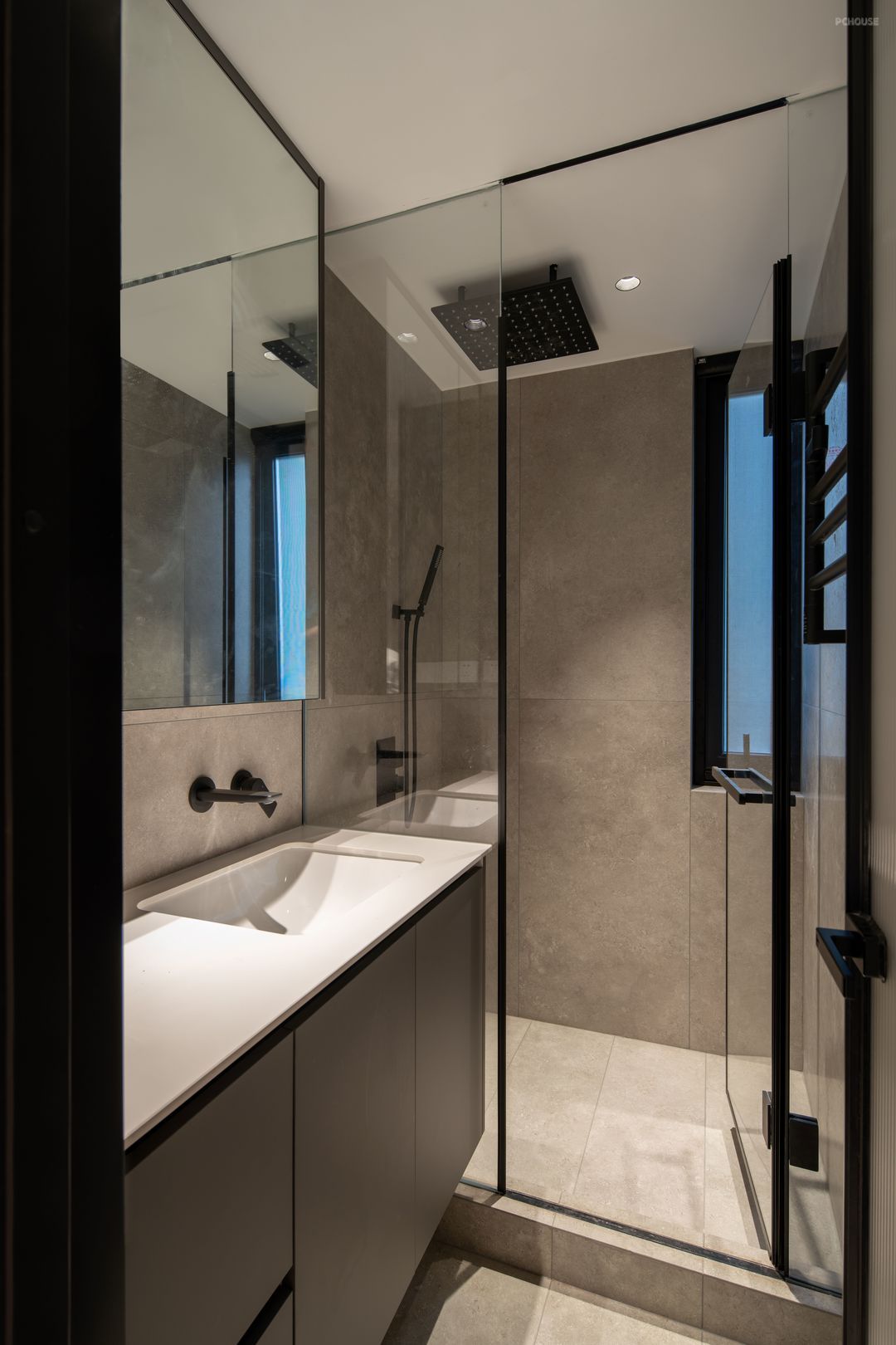 公卫设计了分离式卫生间,把洗漱区与淋浴房规划为一起,马桶单独设计了一个独立空间,解决早高峰的同时共用的情况。