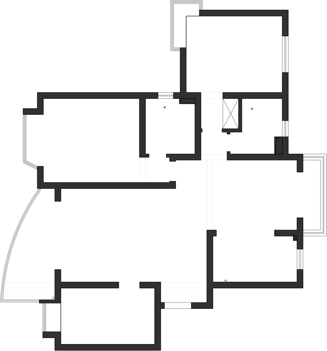 原始户型是常规的三房结构,超大的阳台落地窗和三房朝南的卧室,儿童房尺度感偏小,北阳台利用率低,公卫尺度感偏小。